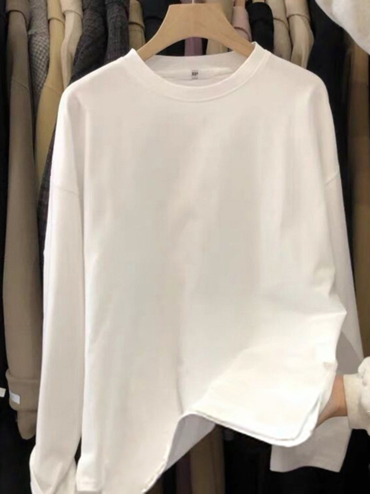 Хлопковый базовый приятный телу осенний демисезонный белый лонгслив, черная футболка, коллекция 2023, оверсайз