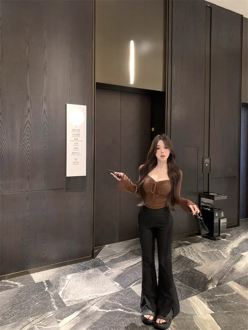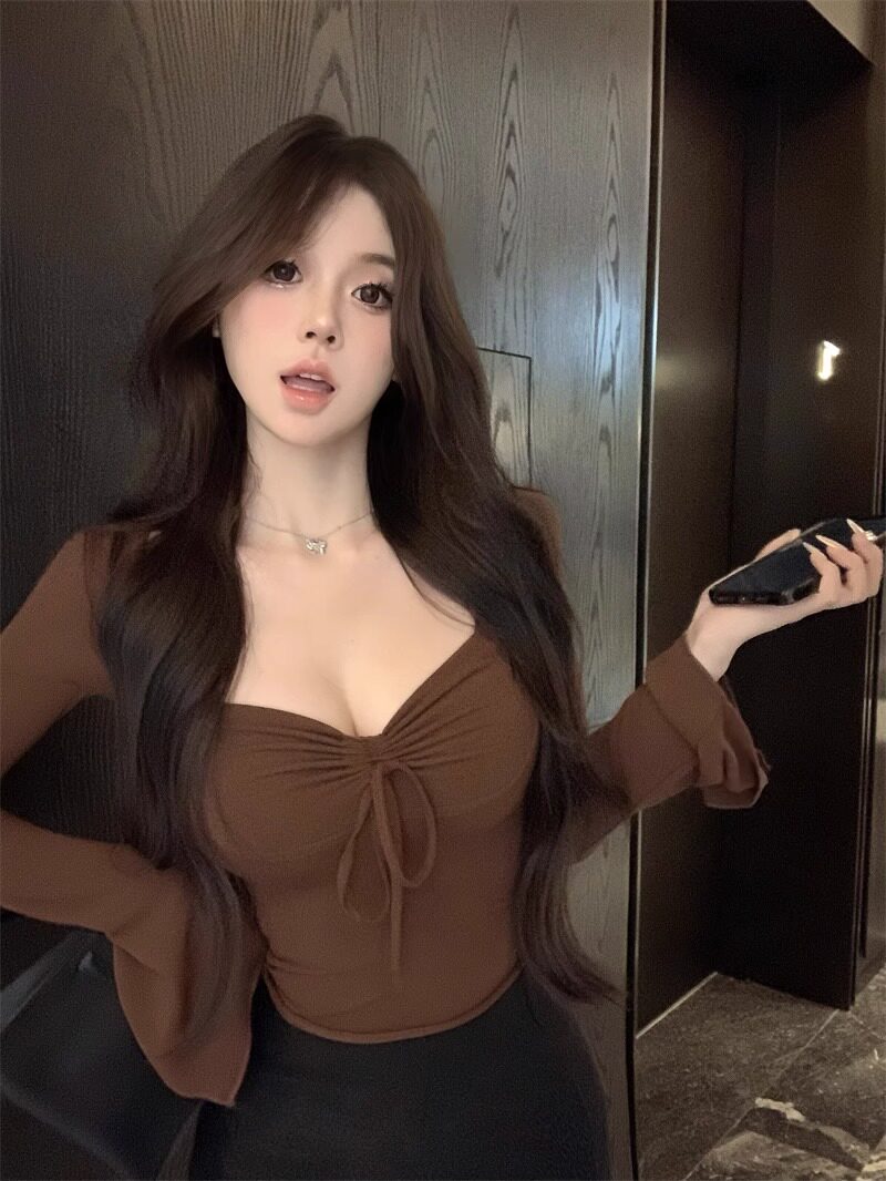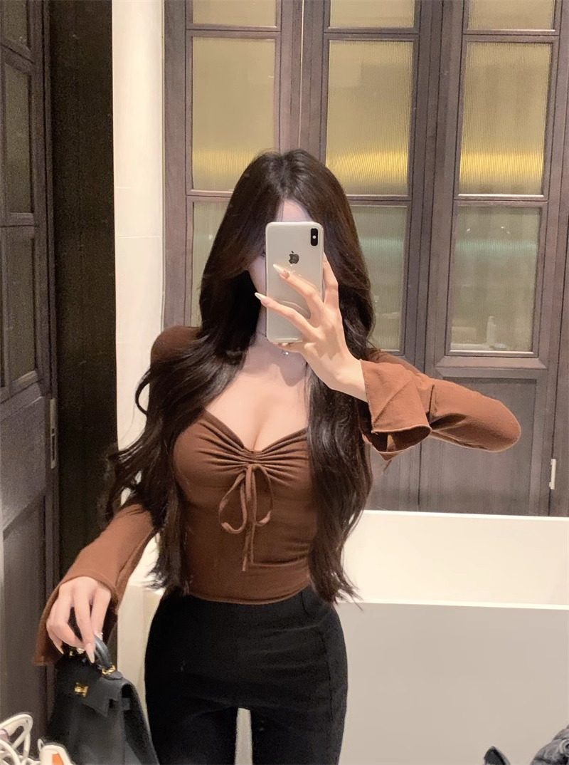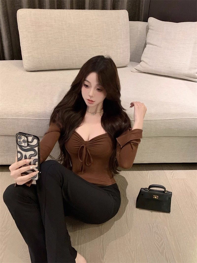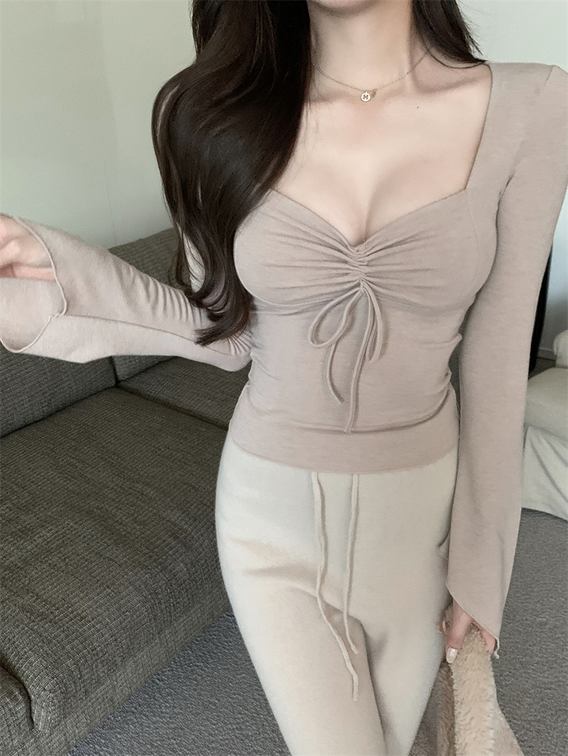 Осенний лонгслив, сексуальный короткий базовый приятный телу корсет, ремень, квадратный вырез