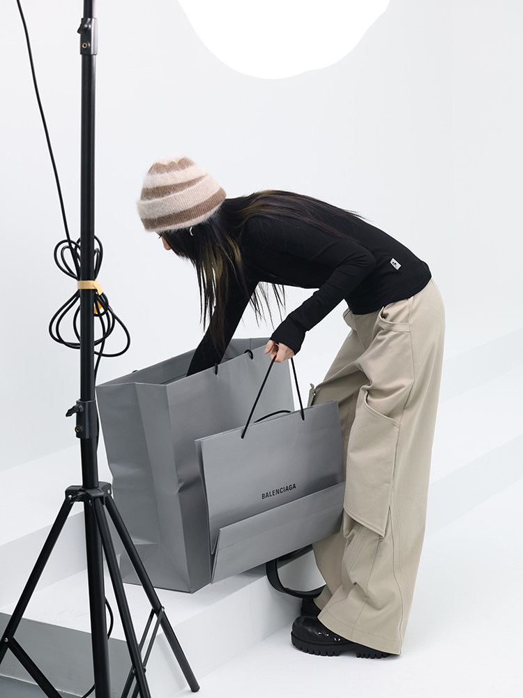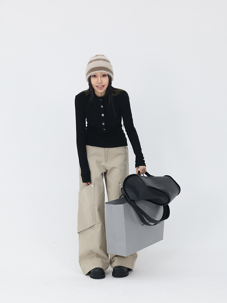 Mei 伢 Fuzzykon Black Small High -High -Necked Gradient Butte Open Placket и похудение с большой эластичной рубашкой.