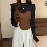 Зимняя футболка, дизайнерский базовый лонгслив, большой размер, в корейском стиле, рукава фонарики, тренд сезона