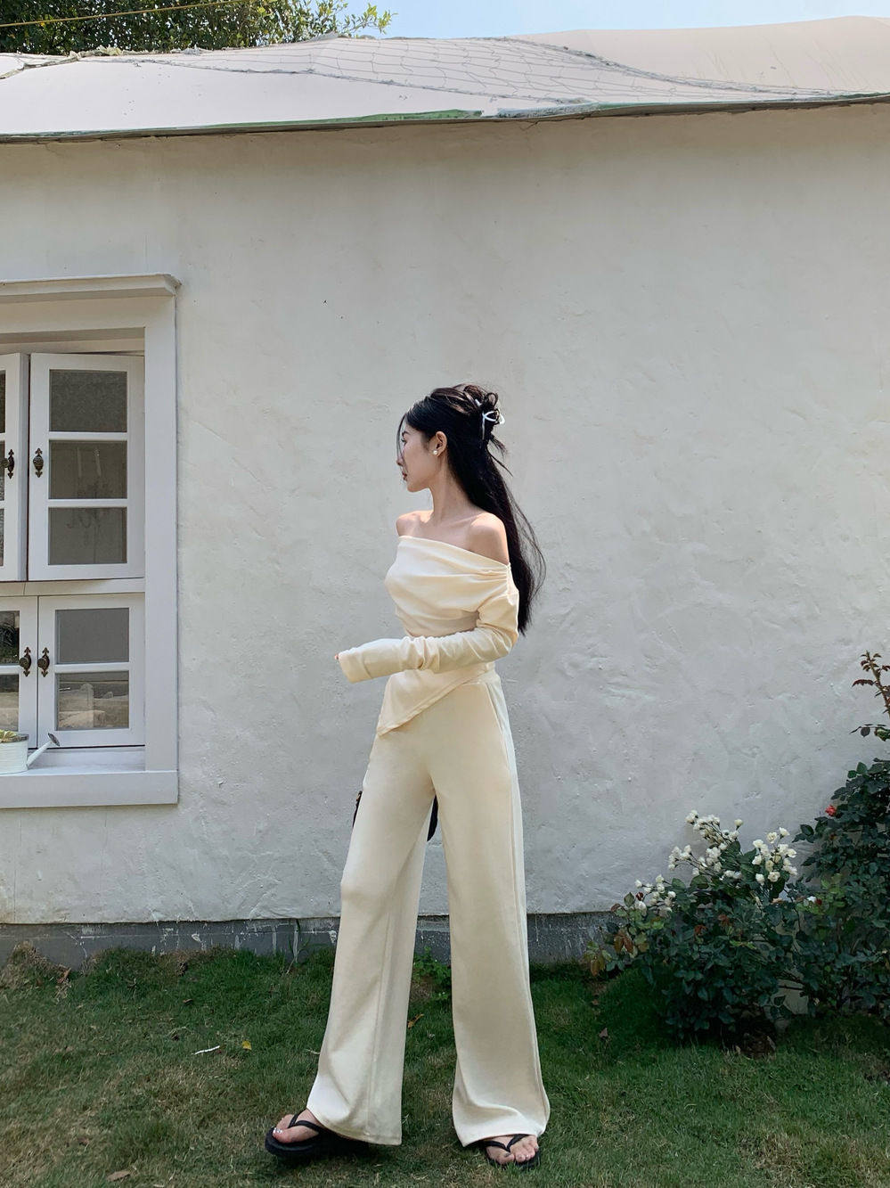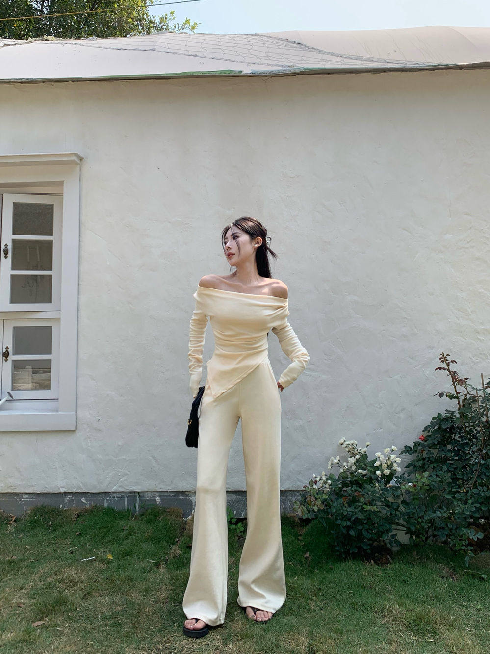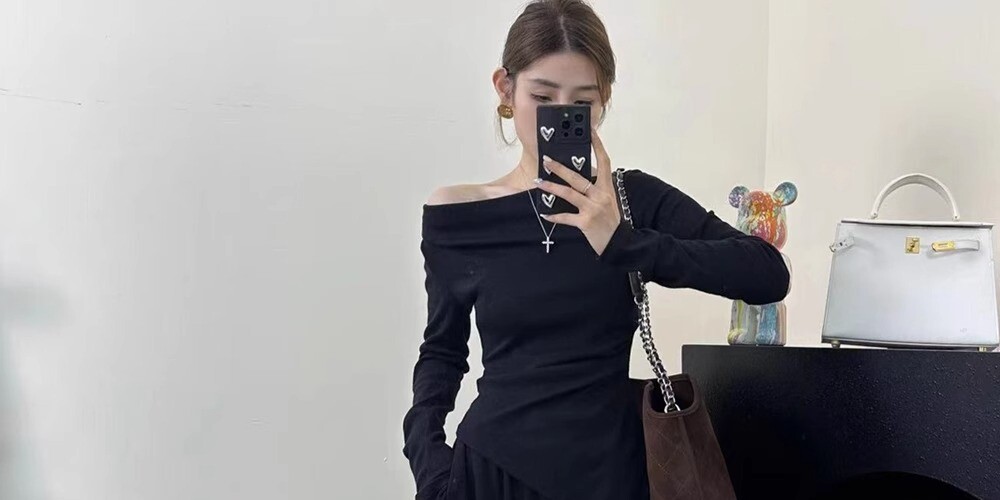 Лонгслив, сексуальный базовый приятный телу ростомер, открытые плечи, осенний, изысканный стиль