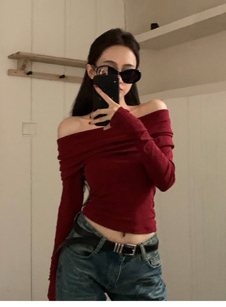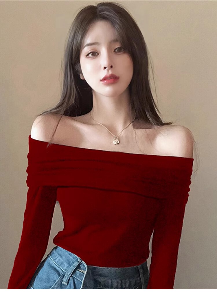 Бархатный демисезонный лонгслив с узкими плечами, футболка
