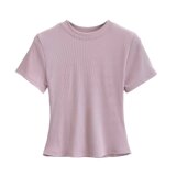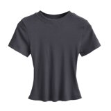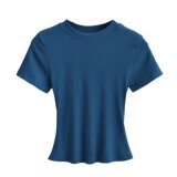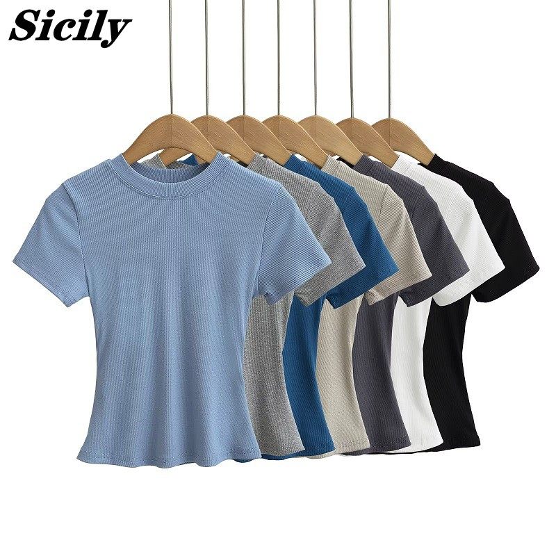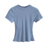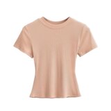 Летняя эластичная футболка с коротким рукавом с круглым воротником, в американском стиле, облегающий крой, в обтяжку
