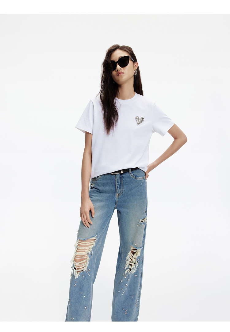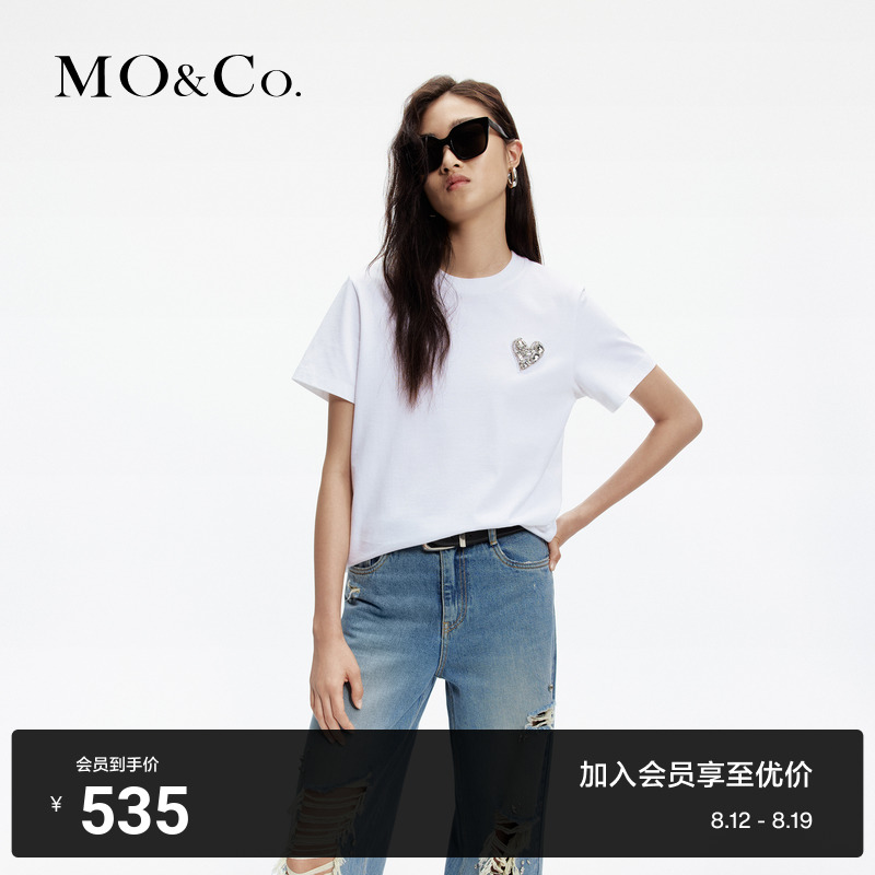 [Антибактериальные анти -медить] Moco Spring и осень Love Diamond Driald Emlemprodery Короткая хлопчатобумаж