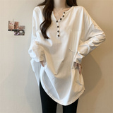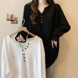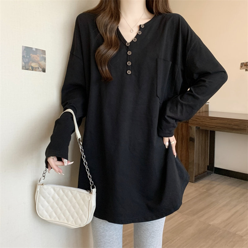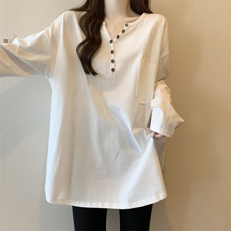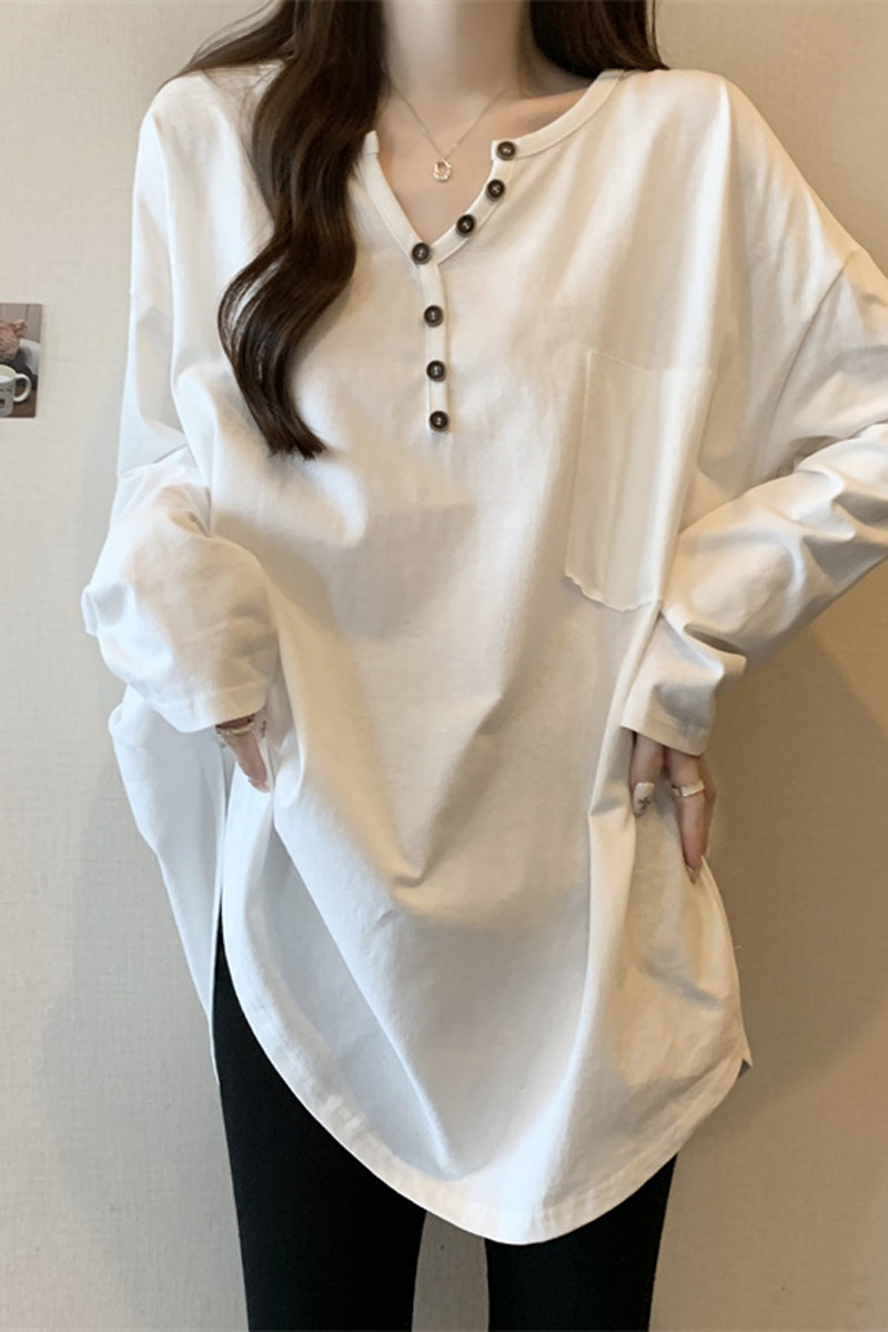 Длинный базовый приятный телу белый лонгслив, большой размер, средней длины, V-образный вырез