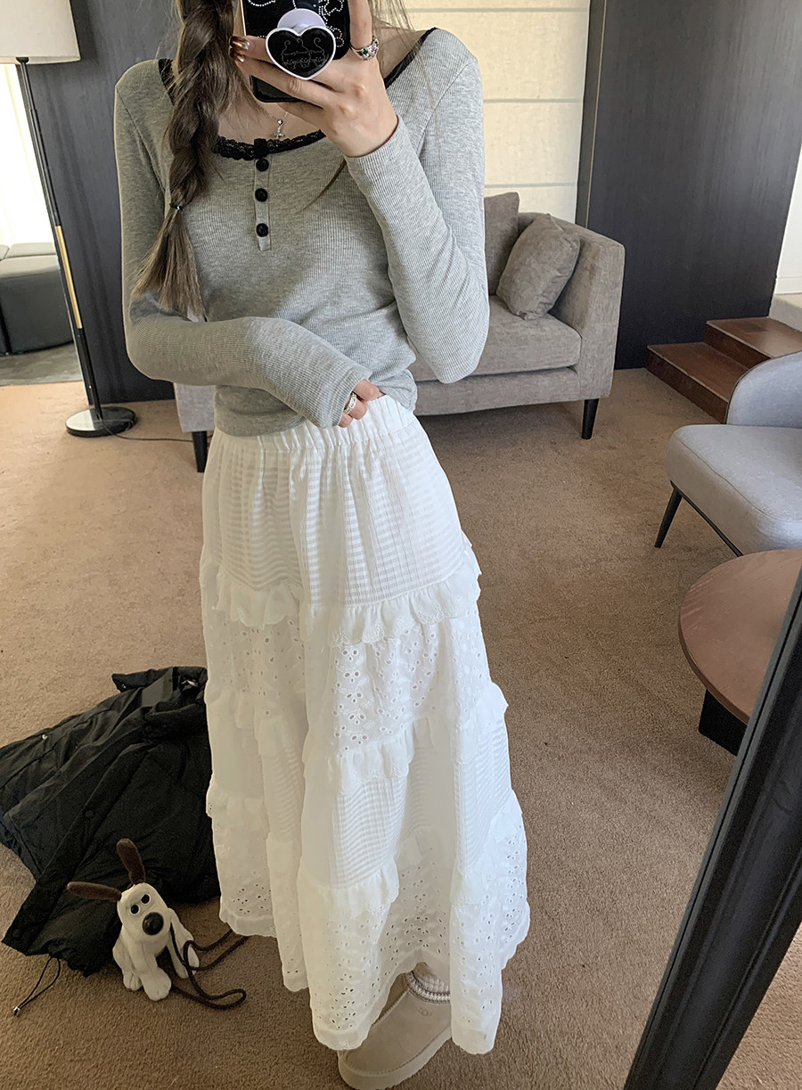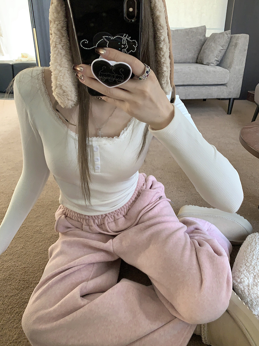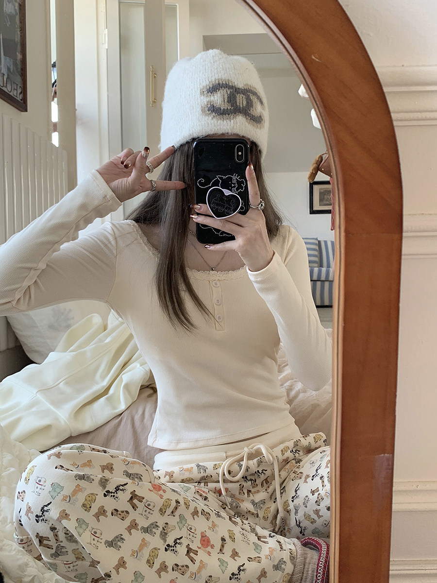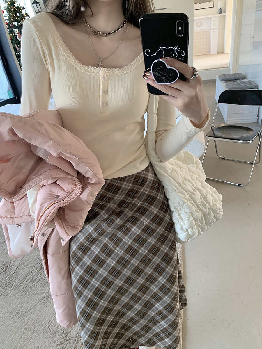 Кружевная утепленная демисезонная футболка, короткий базовый приятный телу топ с чашечками, кружевное платье