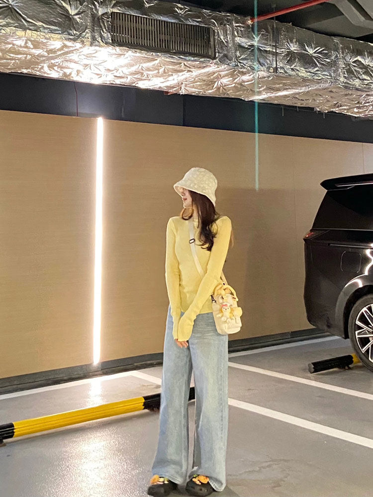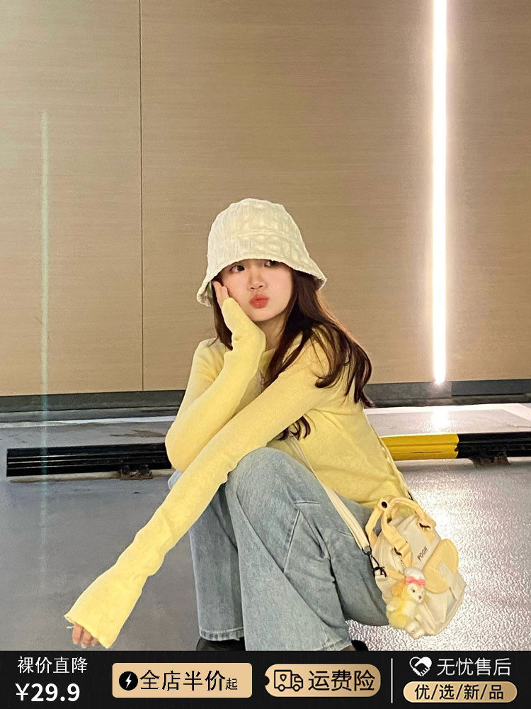 Желтый осенний базовый приятный телу лонгслив, облегающий крой