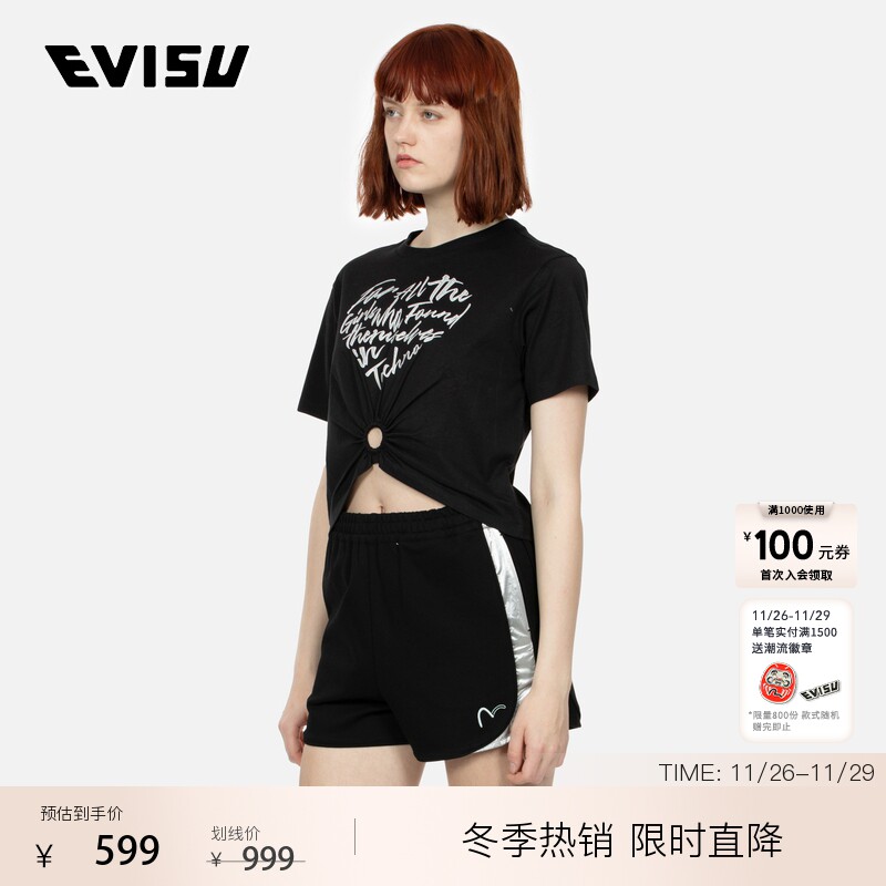 Женская футболка EVISU KURO 2024 с короткими рукавами и логотипом 2ESGNW4TS6061FFCT