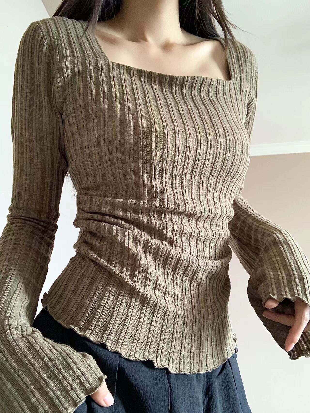 Лонгслив, весенний трикотажный приталенный свитер, короткий мегафон, квадратный вырез