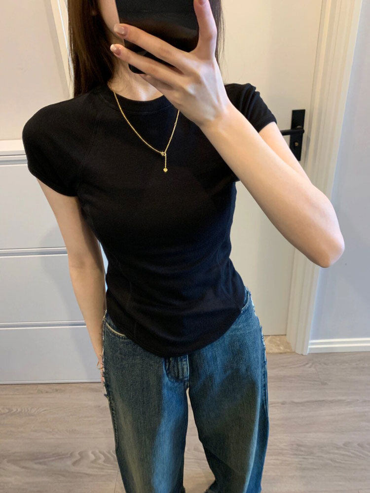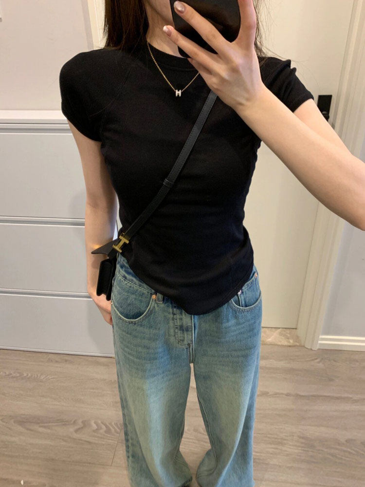 Хлопковая черная летняя сексуальная короткая футболка, в американском стиле, короткий рукав