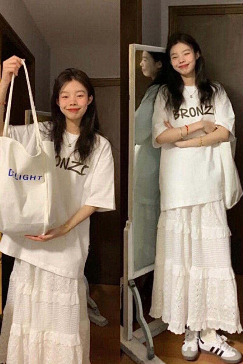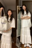 Универсальная трехмерная футболка с буквами для отдыха, юбка в складку, длинная юбка, комплект