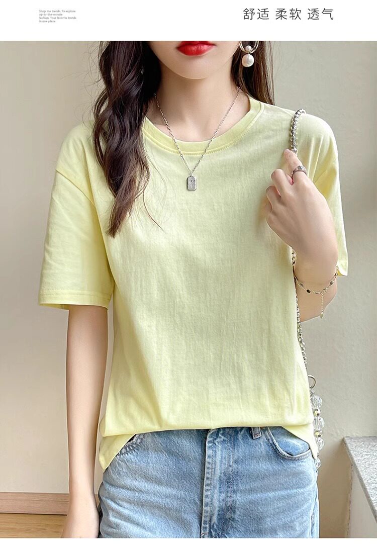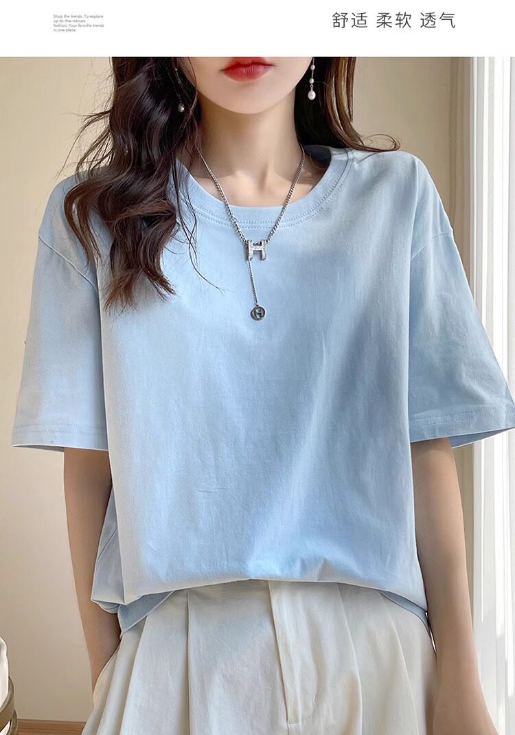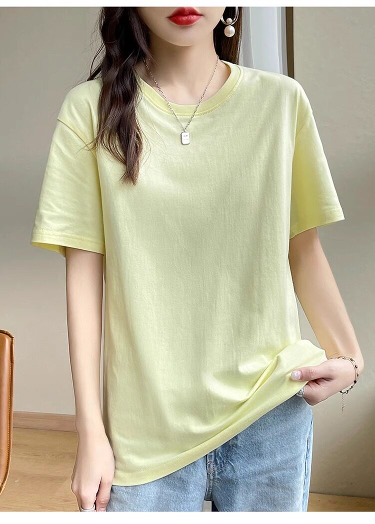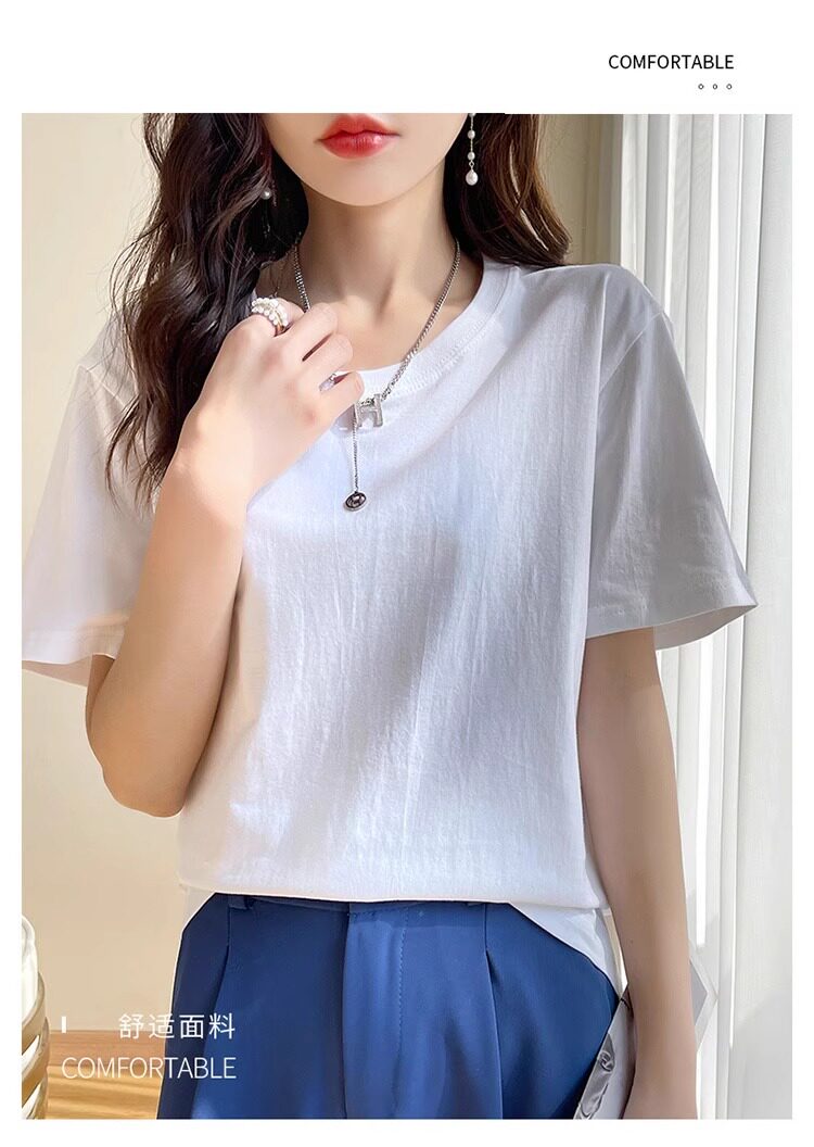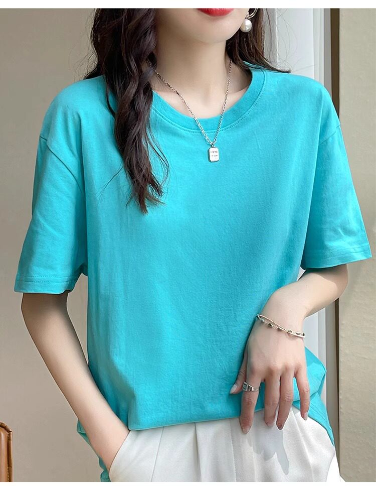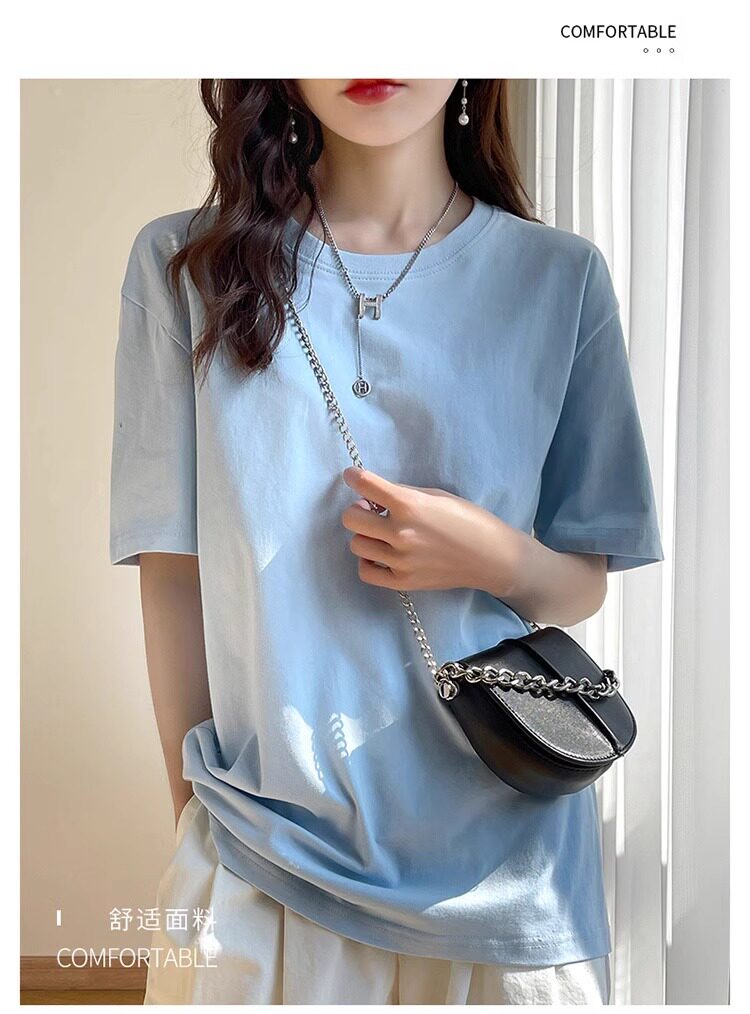 Хлопковая летняя белая базовая футболка с коротким рукавом подходит для мужчин и женщин с круглым воротником, свободный крой