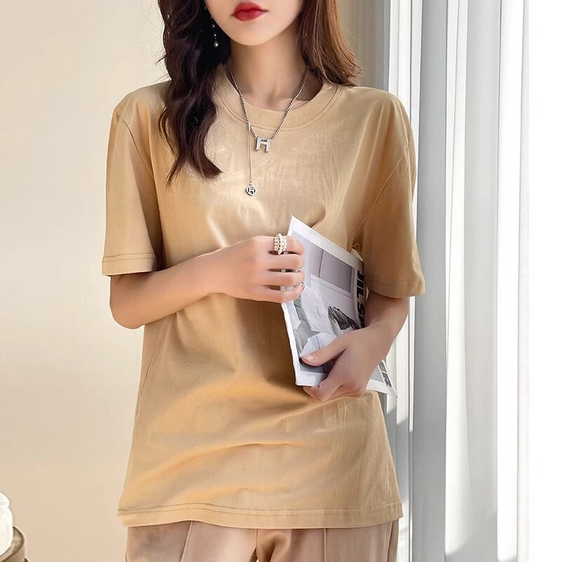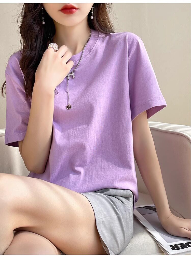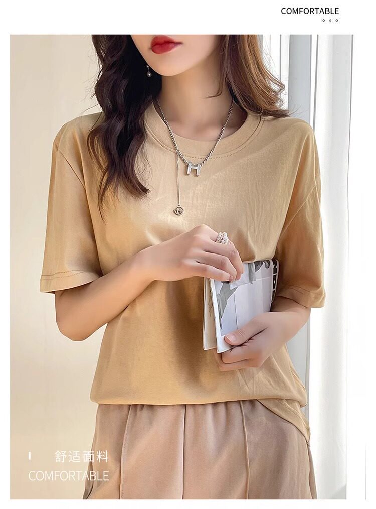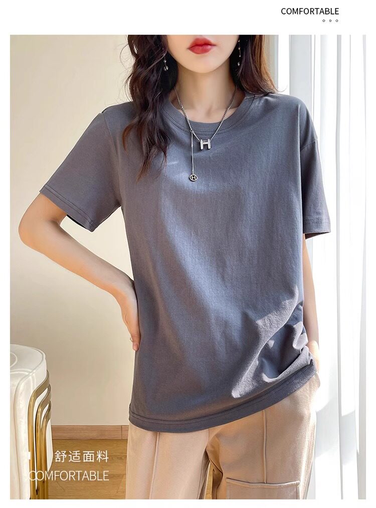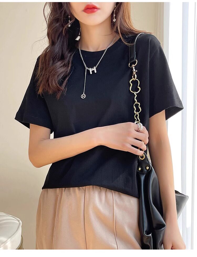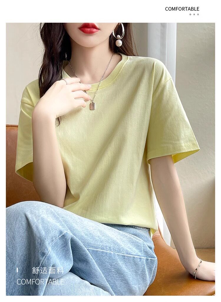 Хлопковая летняя белая базовая футболка с коротким рукавом подходит для мужчин и женщин с круглым воротником, свободный крой
