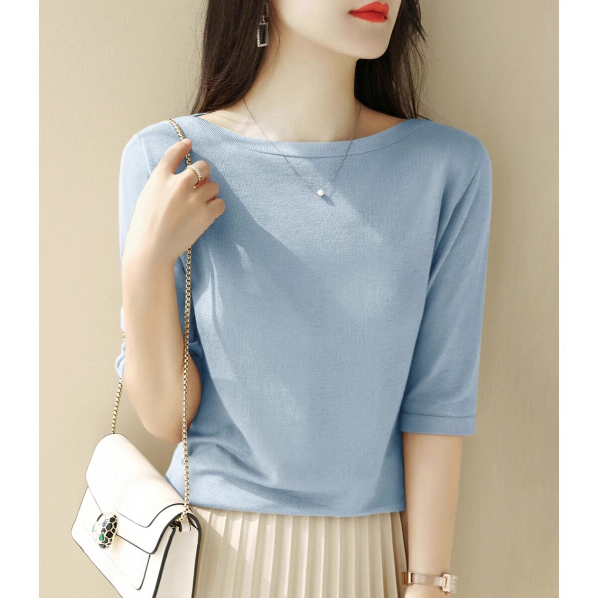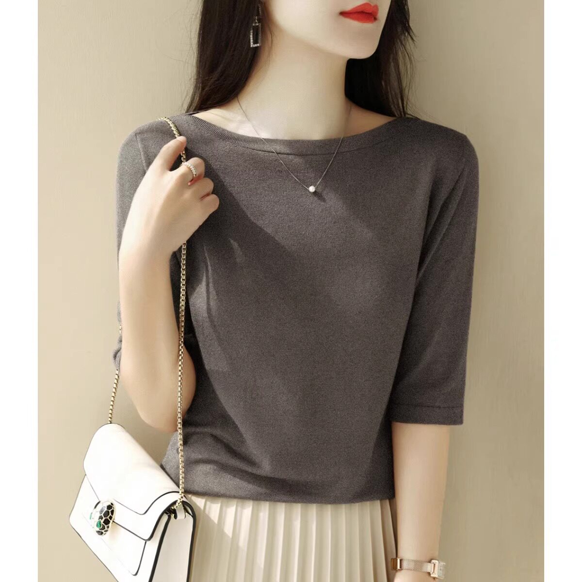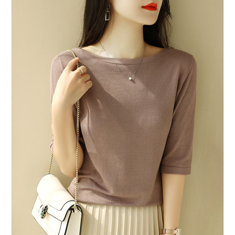 Трикотажная летняя футболка с коротким рукавом, открытые плечи