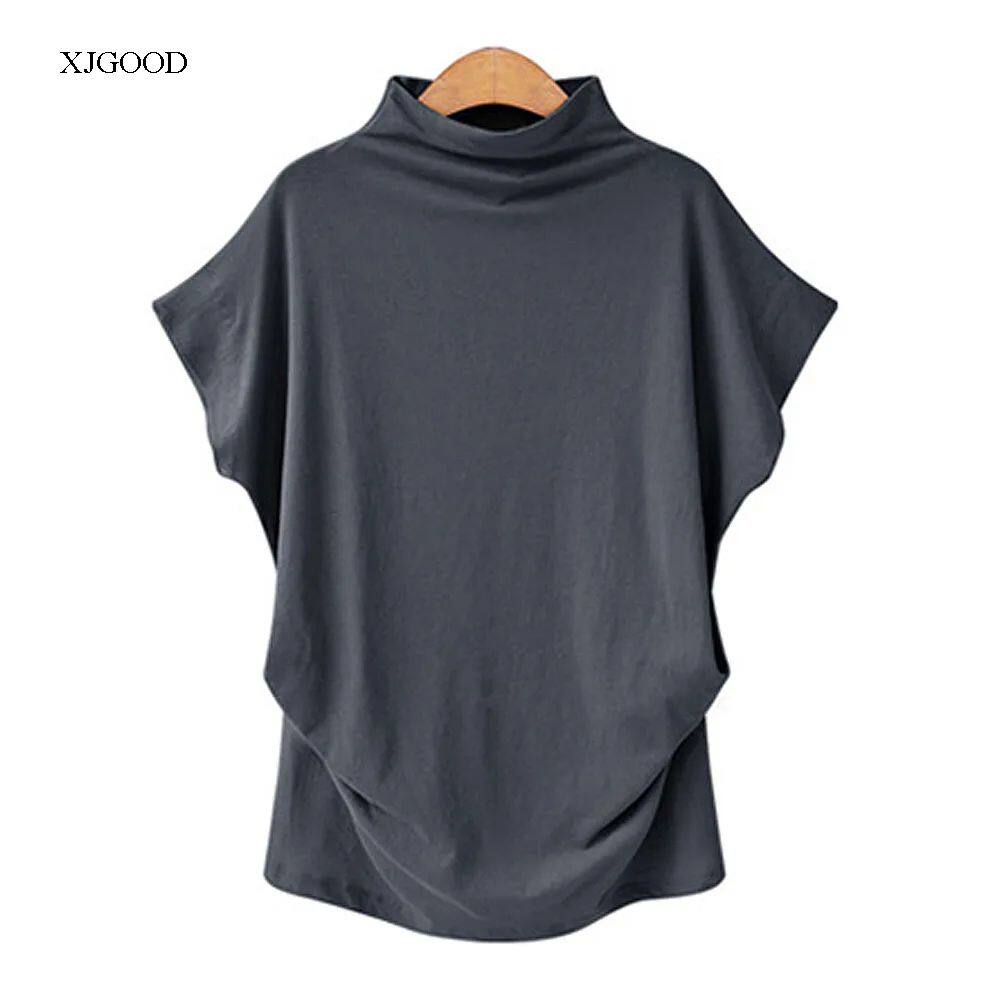 Объемная футболка с высоким воротником и короткими рукавами. Объемная футболка с высоким воротником и короткими рукавами.