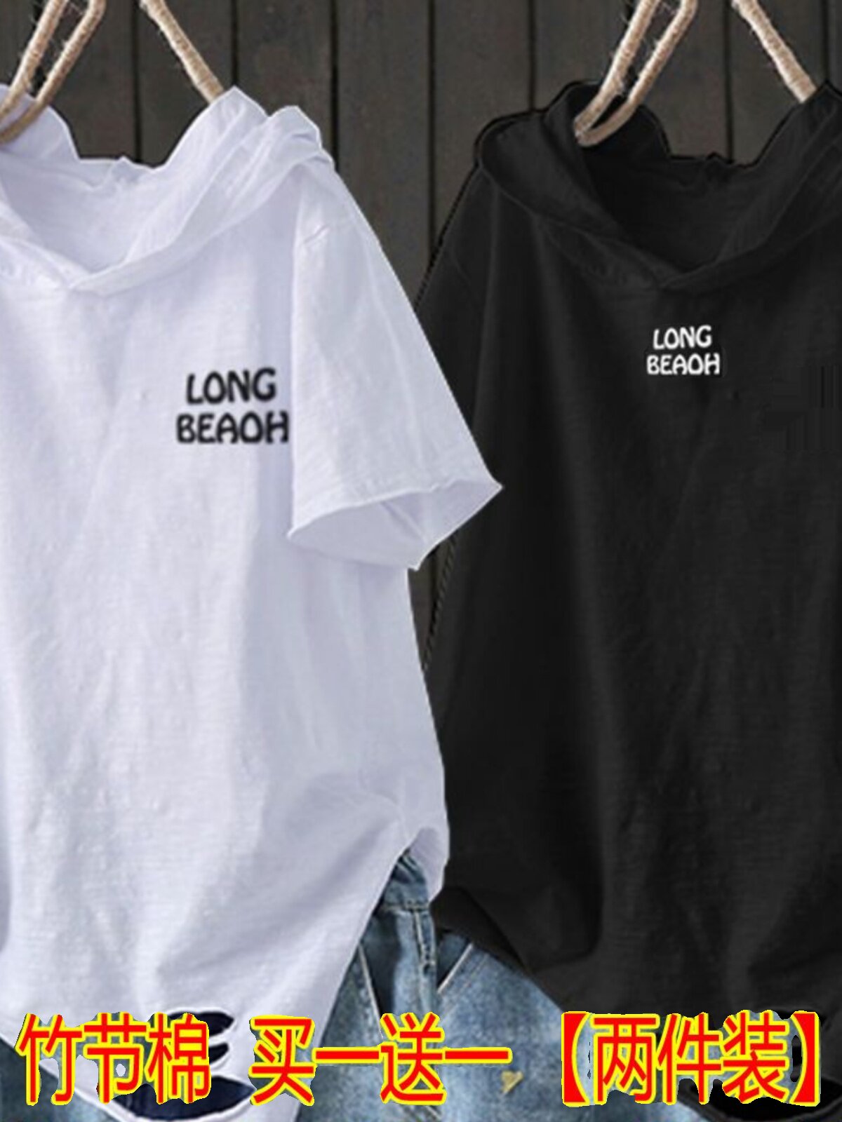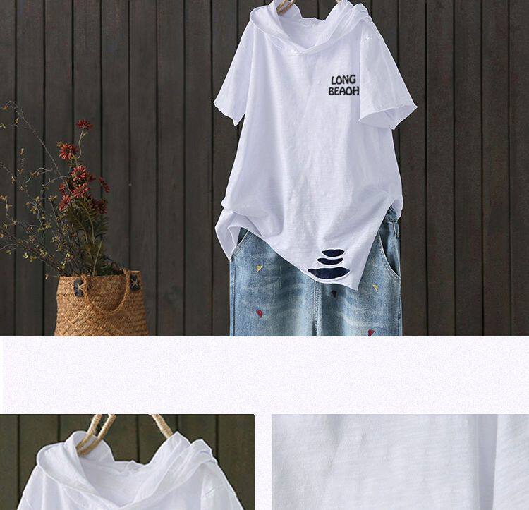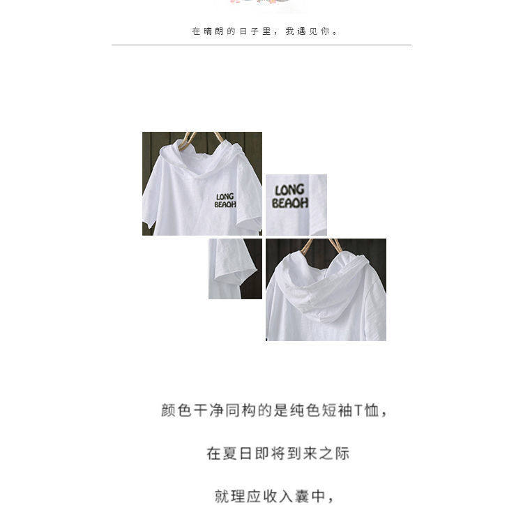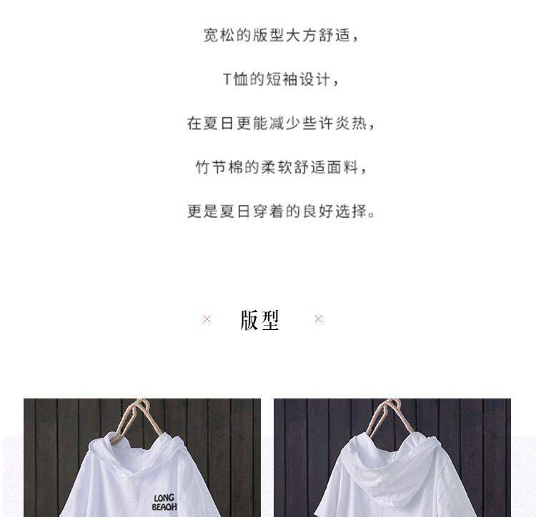 Бамбуковый комплект с капюшоном, летняя модная футболка для отдыха, оверсайз, в корейском стиле, короткий рукав