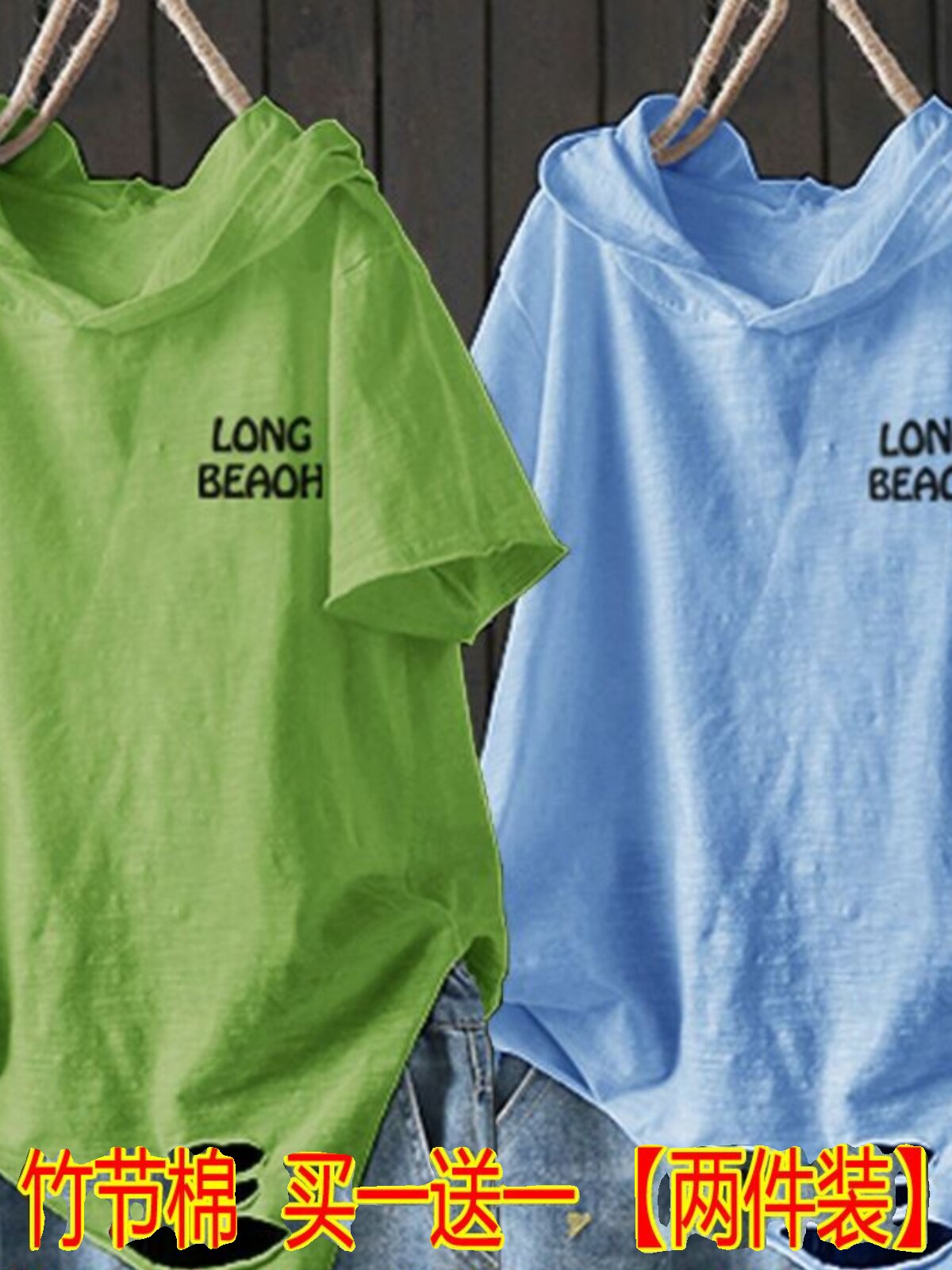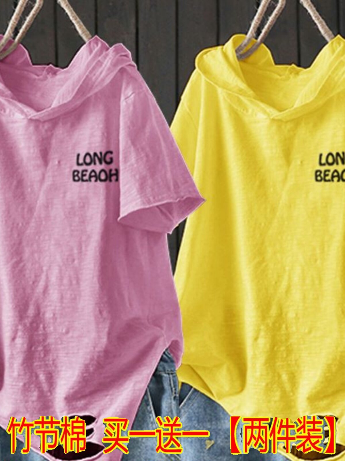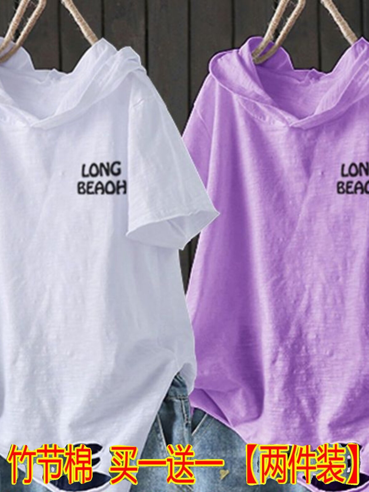 Бамбуковый комплект с капюшоном, летняя модная футболка для отдыха, оверсайз, в корейском стиле, короткий рукав