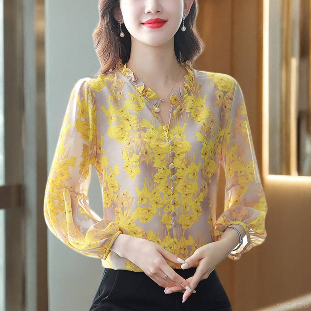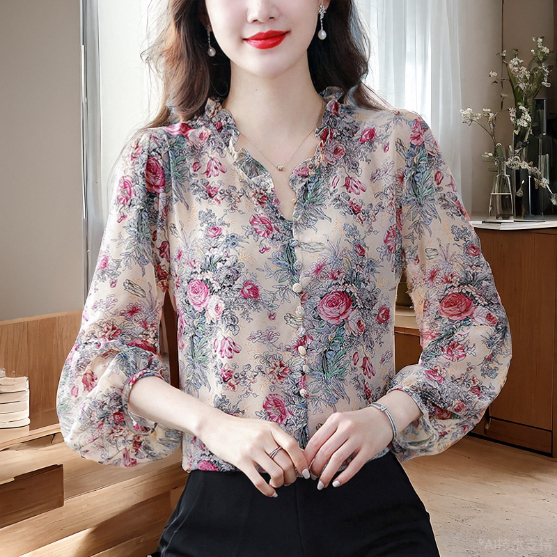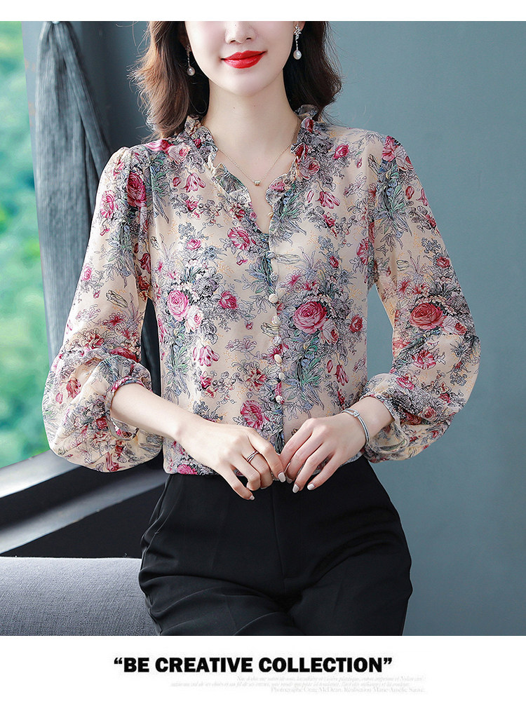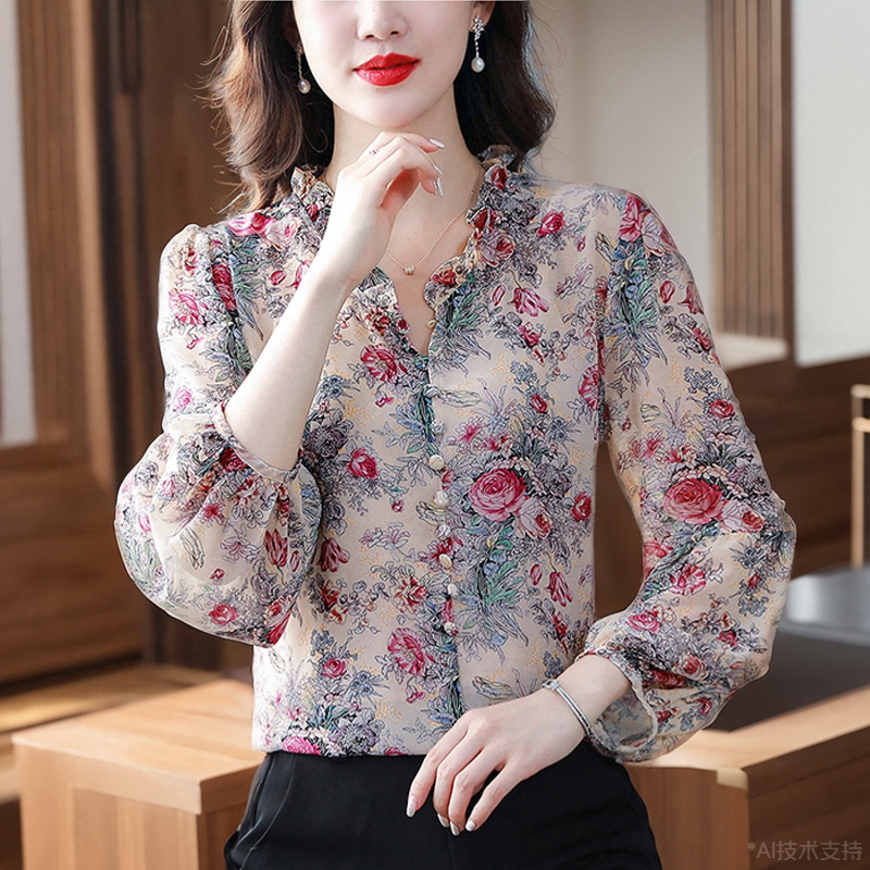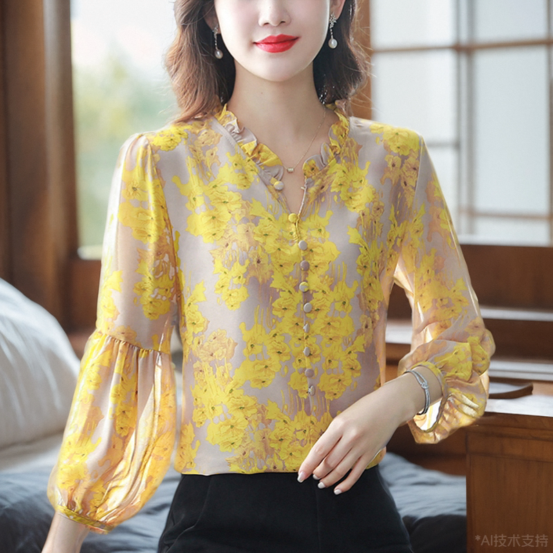 Шелковая рубашка, летний осенний шифоновый лонгслив, в западном стиле