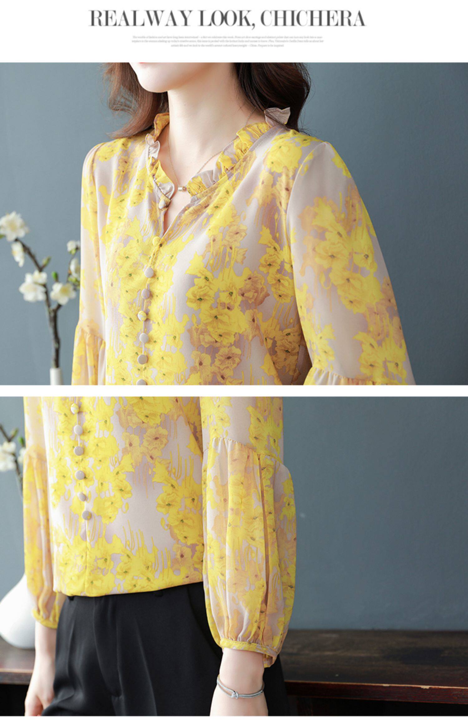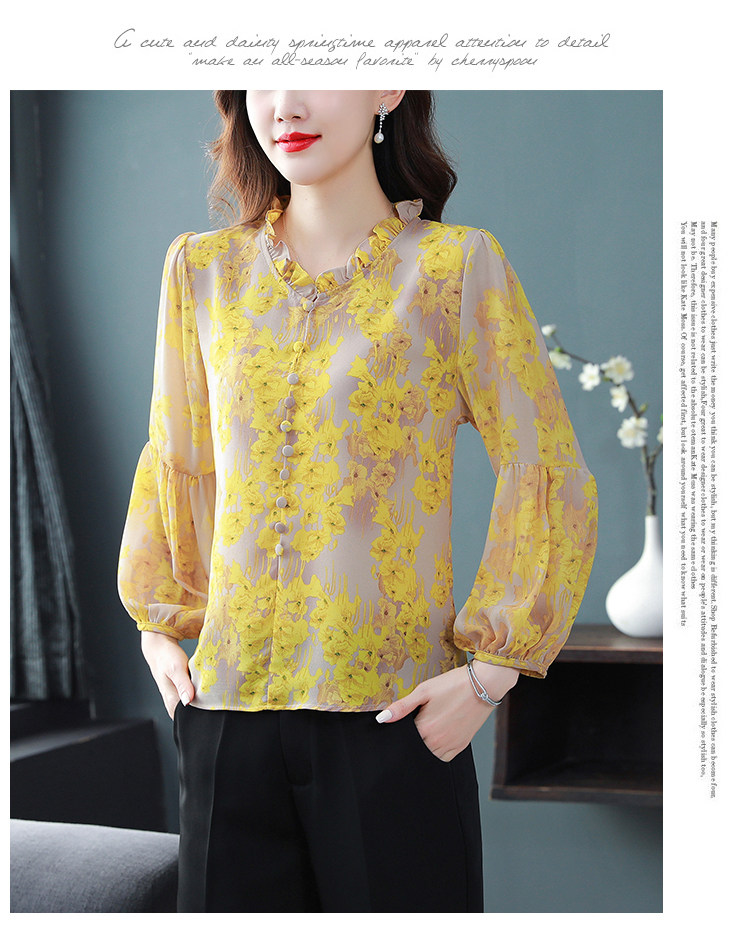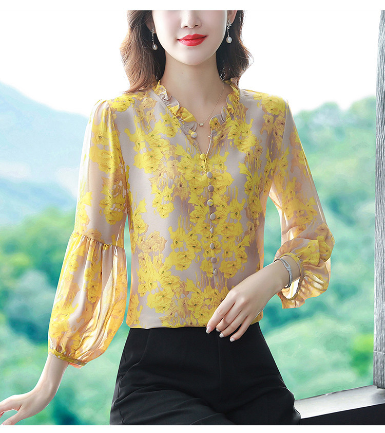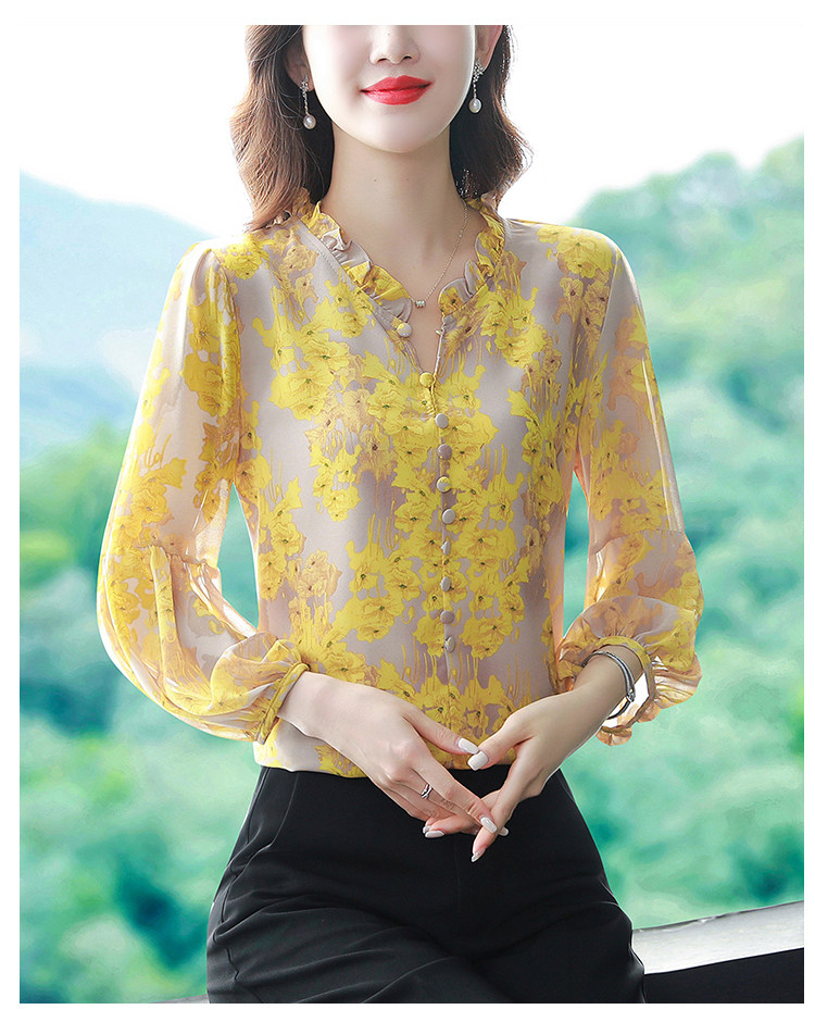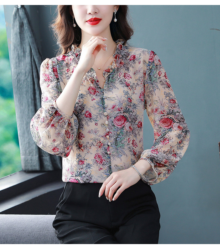Шелковая рубашка, летний осенний шифоновый лонгслив, в западном стиле