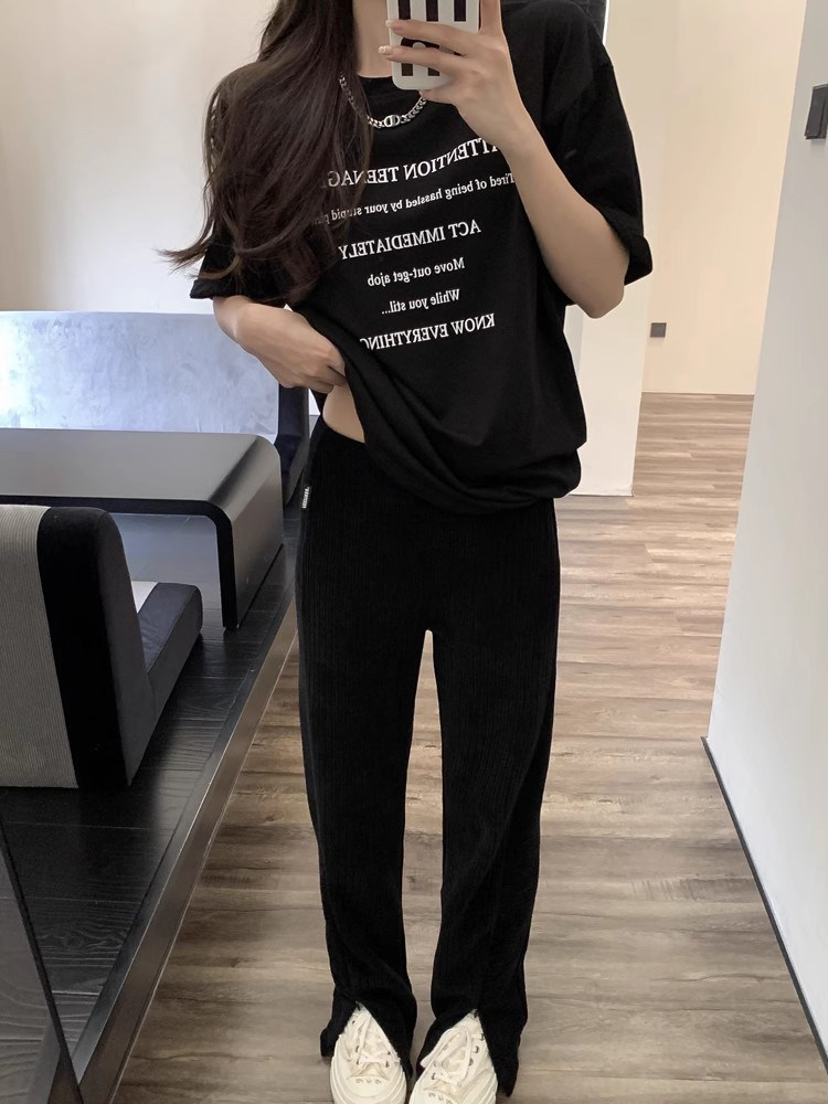 Летняя длинная черная базовая футболка, свободный крой, средней длины, длина макси