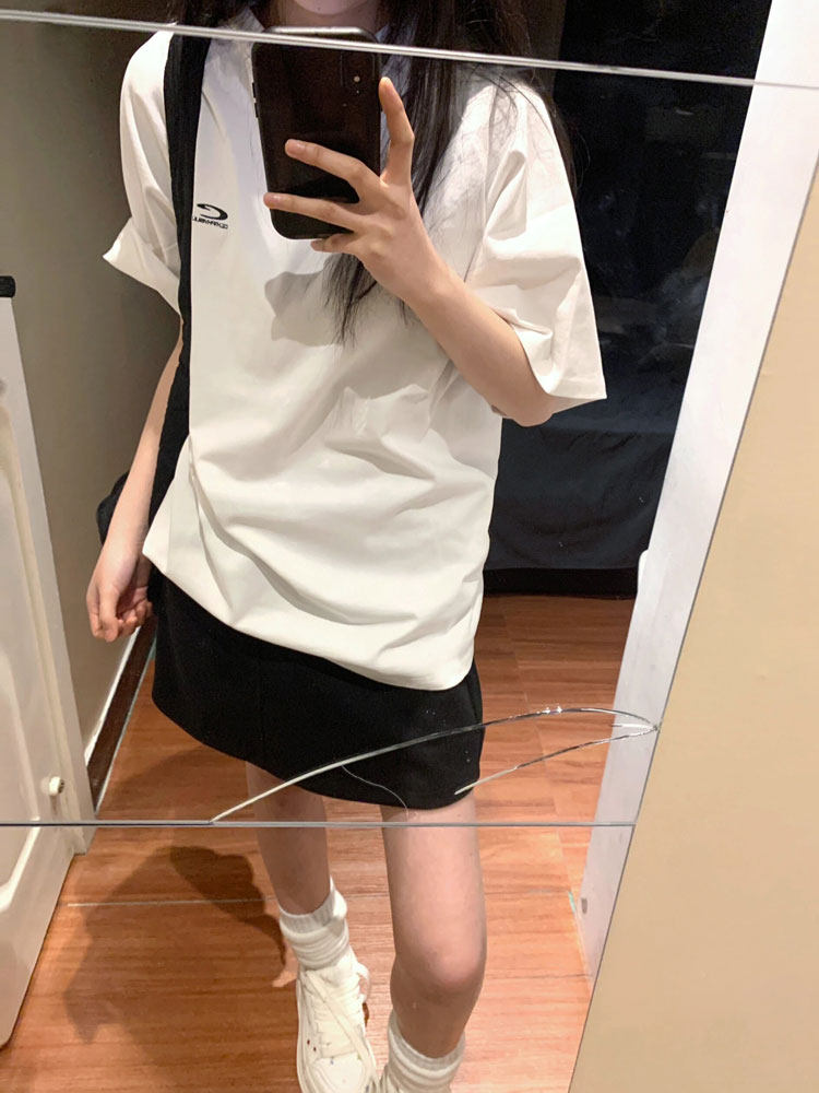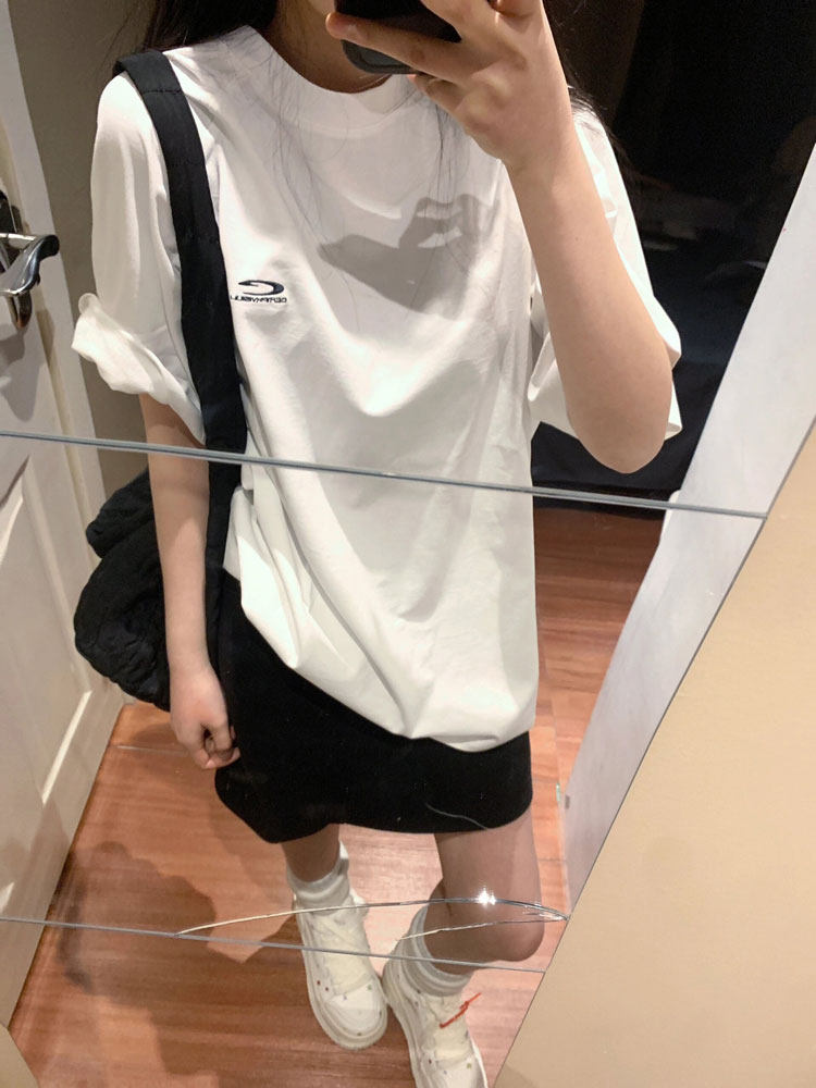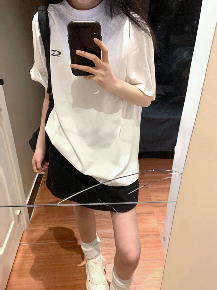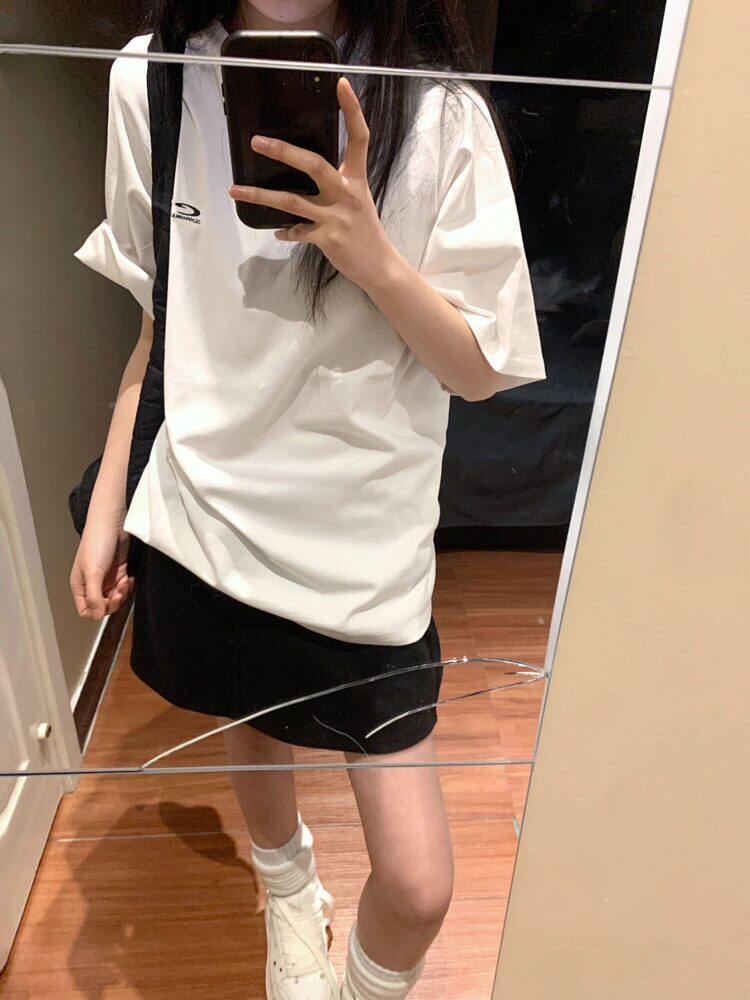 Ретро белая летняя футболка, в американском стиле, оверсайз, свободный крой, этнический стиль