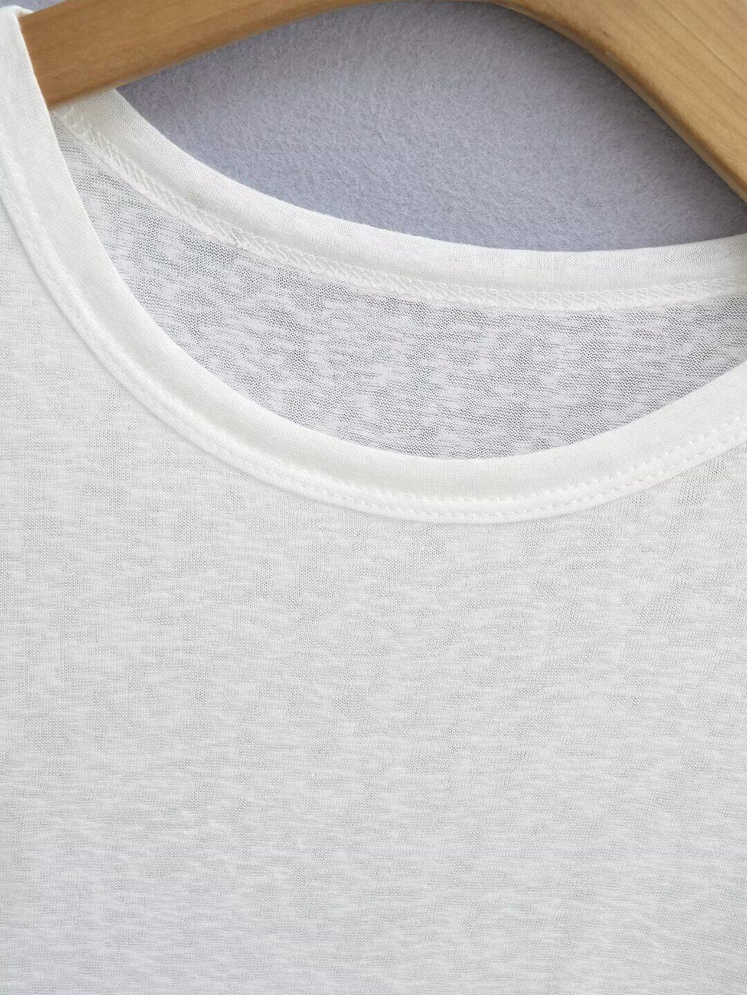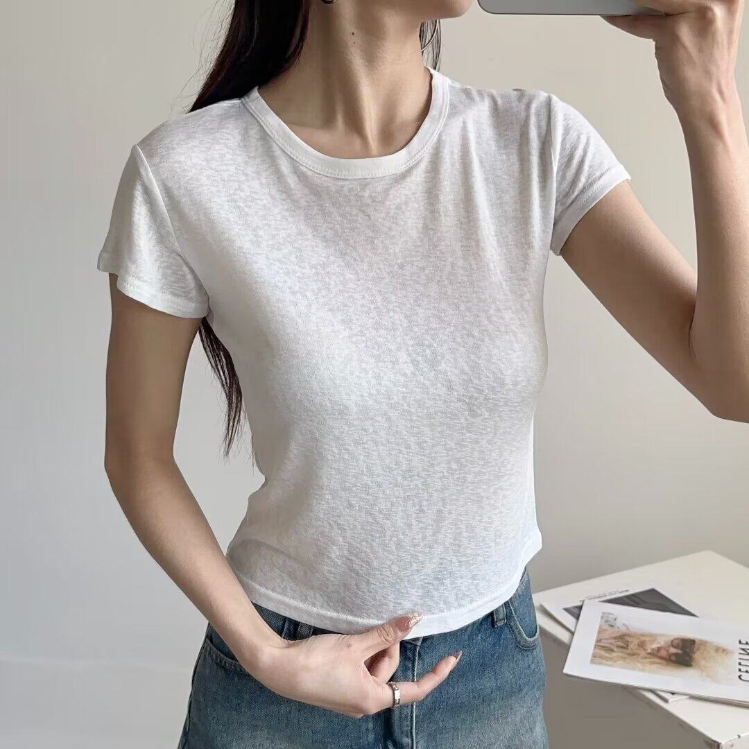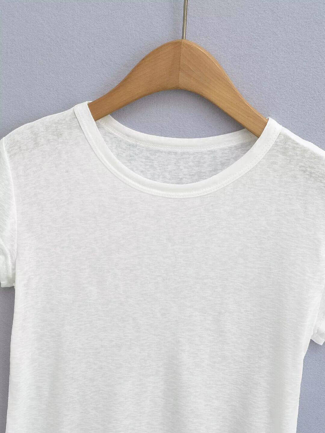 Белая базовая летняя однотонная легкая и тонкая футболка с коротким рукавом с круглым воротником