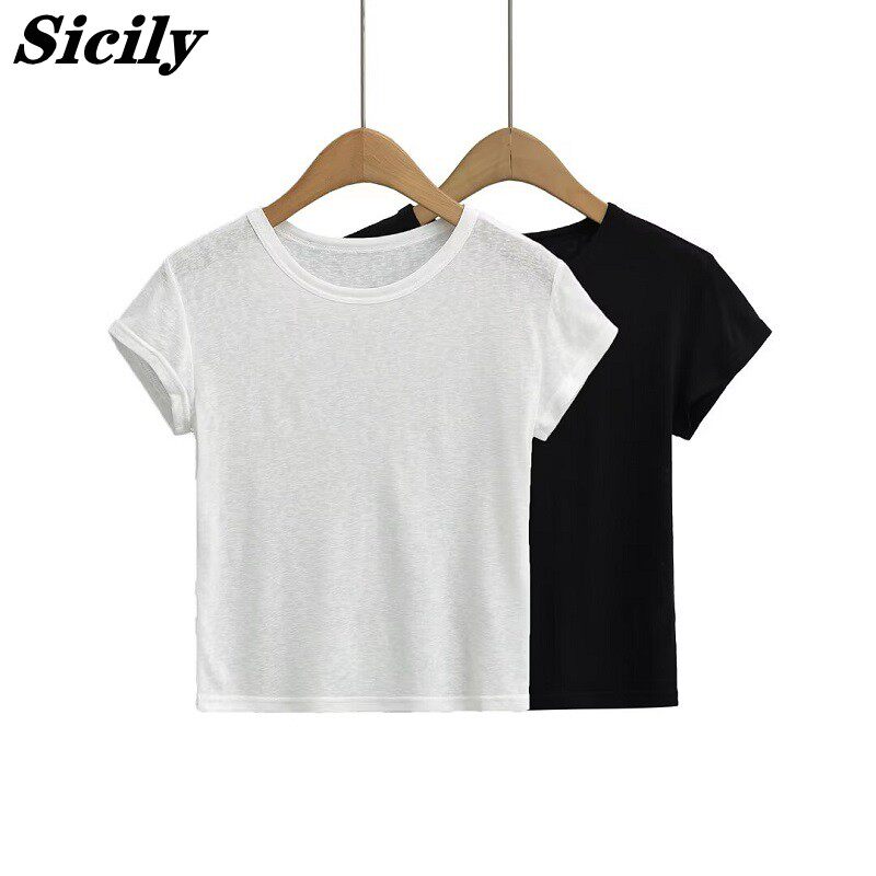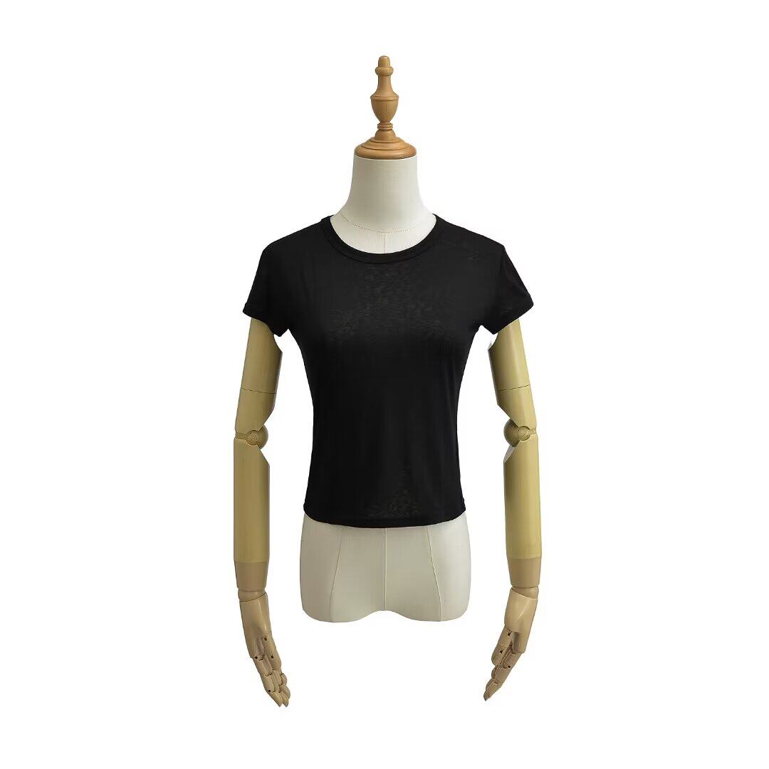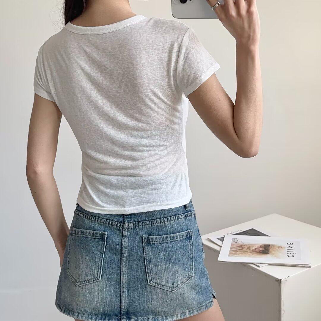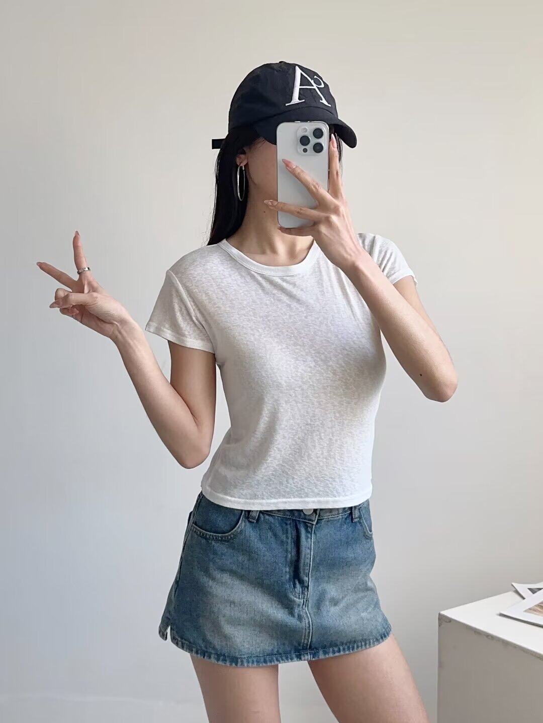 Белая базовая летняя однотонная легкая и тонкая футболка с коротким рукавом с круглым воротником