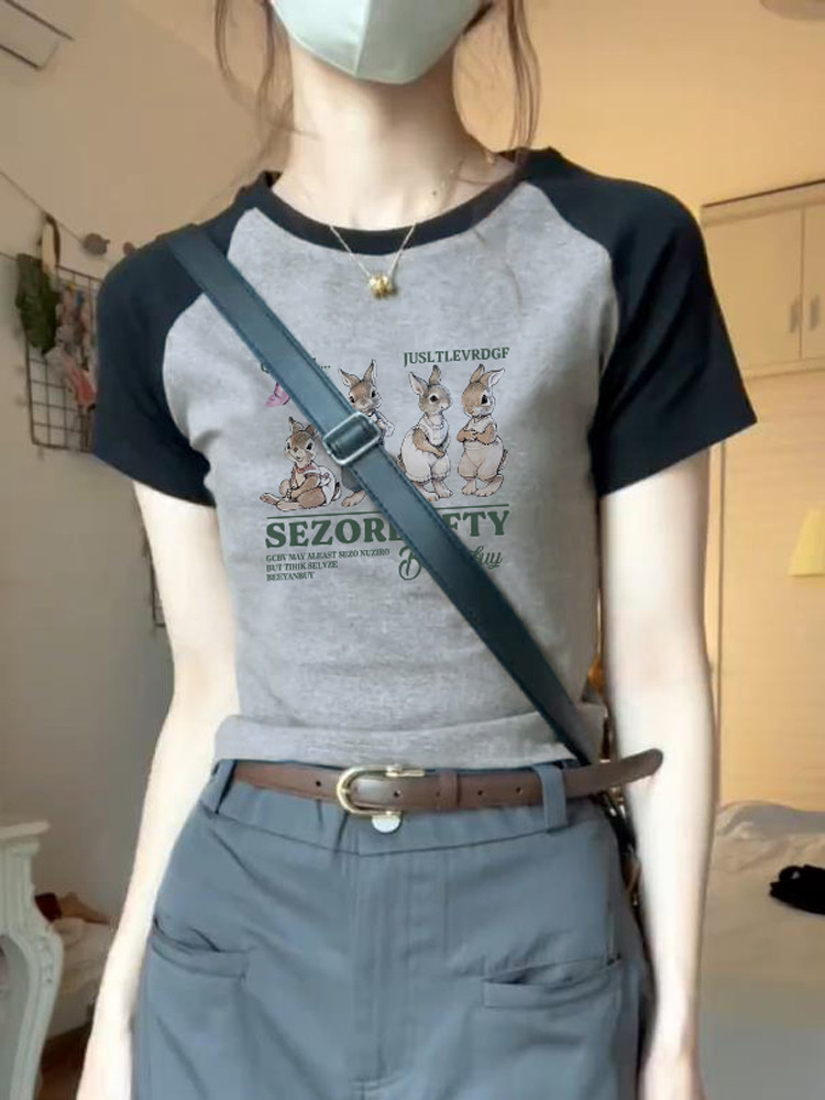 Ретро короткая летняя футболка, в американском стиле, короткий рукав, в обтяжку, облегающий крой