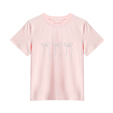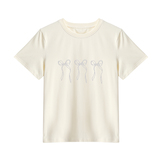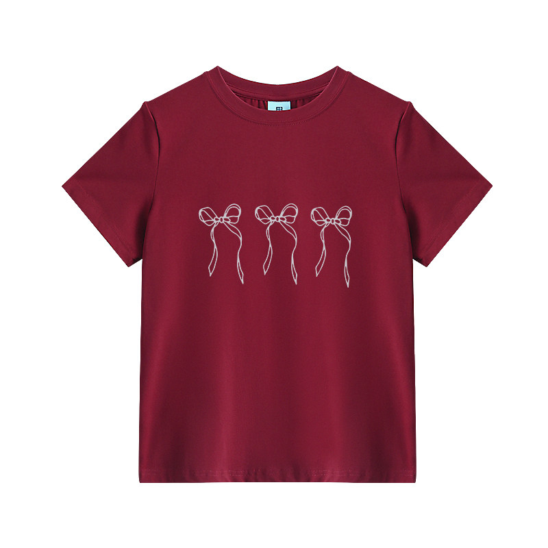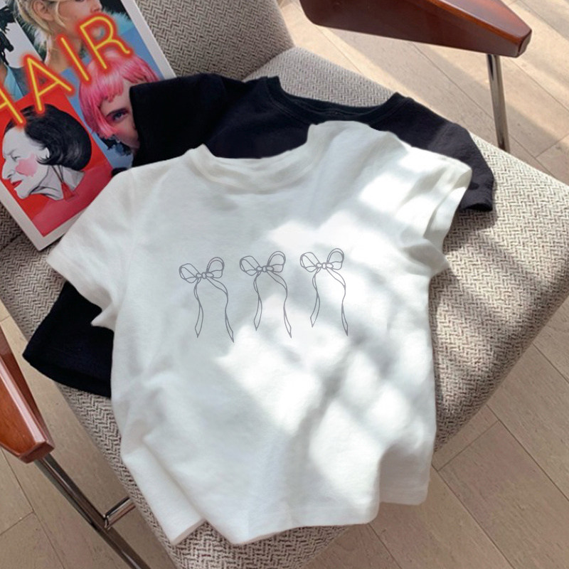 Абрикосовая приталенная ретро летняя футболка с бантиком, короткий рукав, по фигуре, подходит для подростков