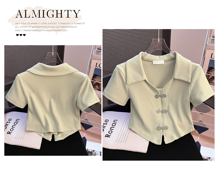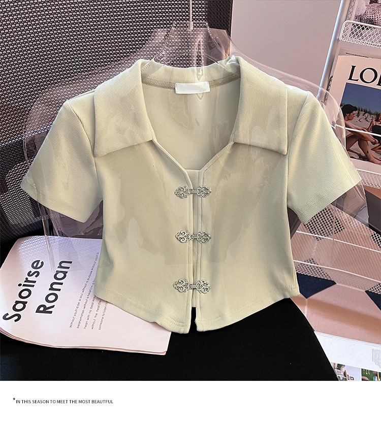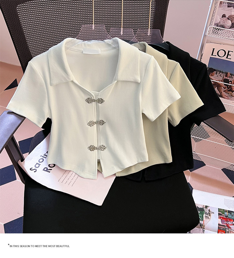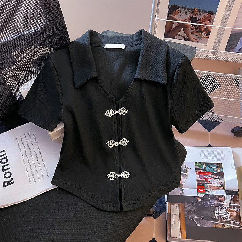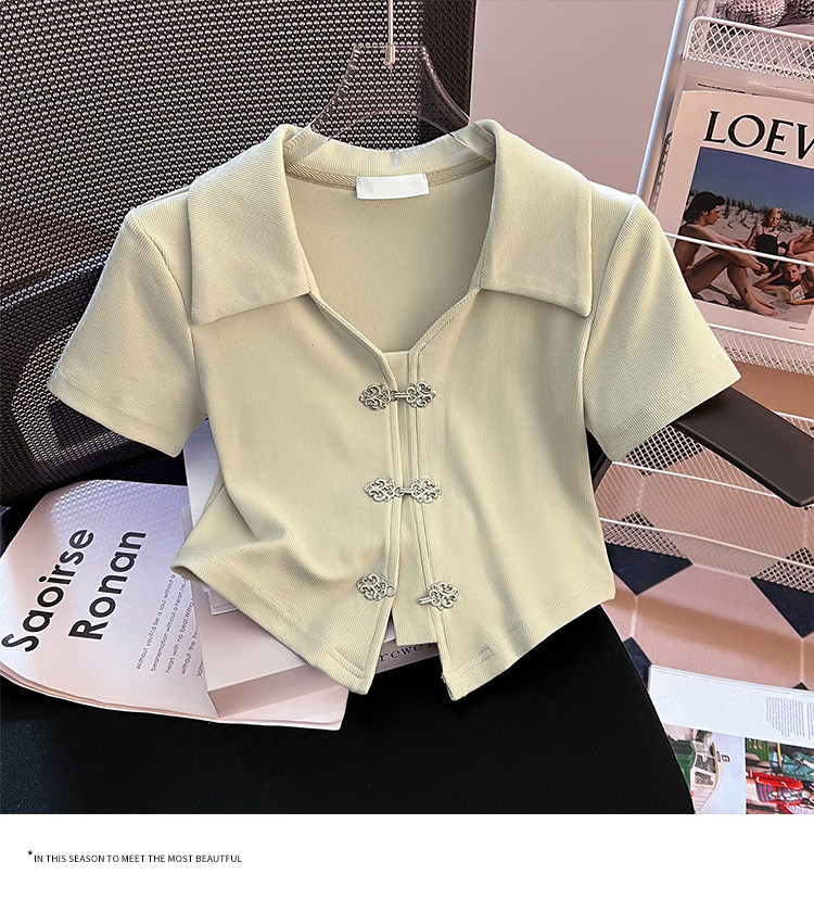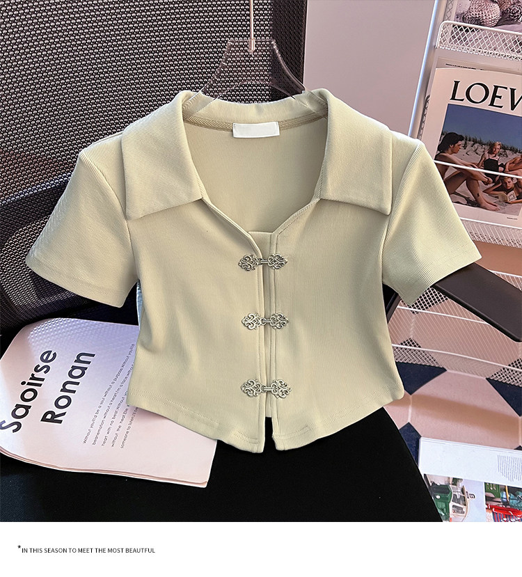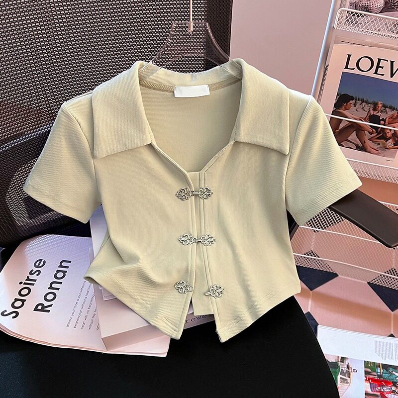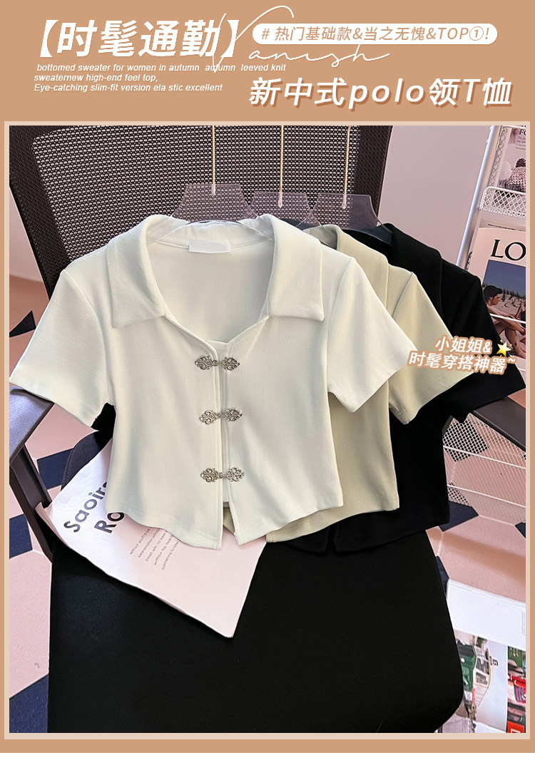 Летняя приталенная футболка, китайский стиль, воротник поло, подходит для подростков, короткий рукав