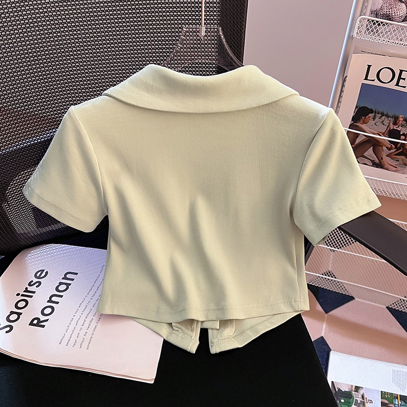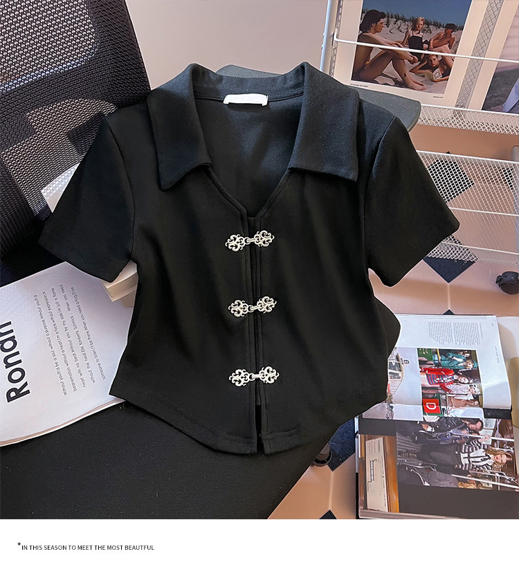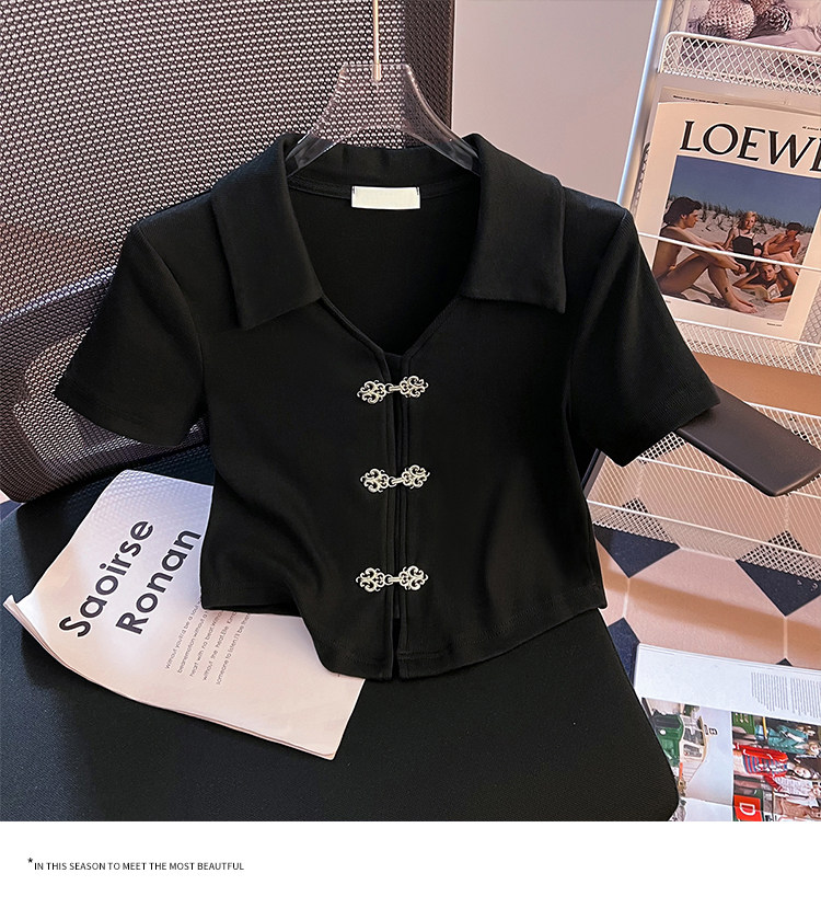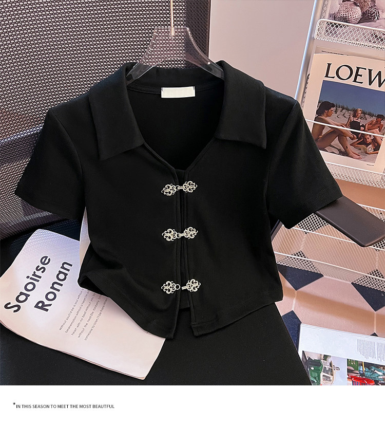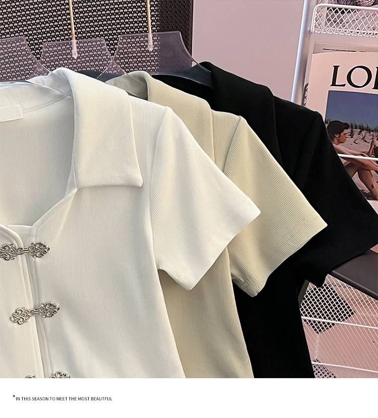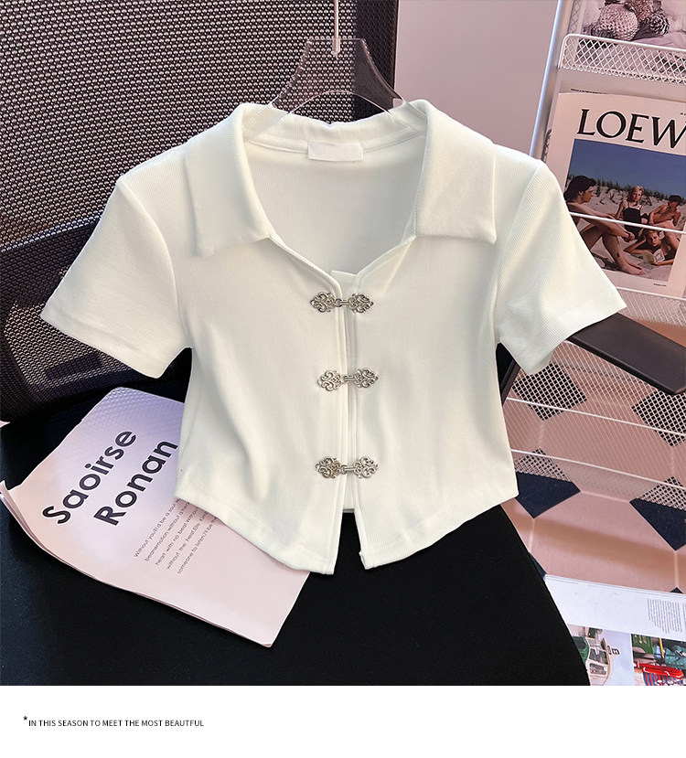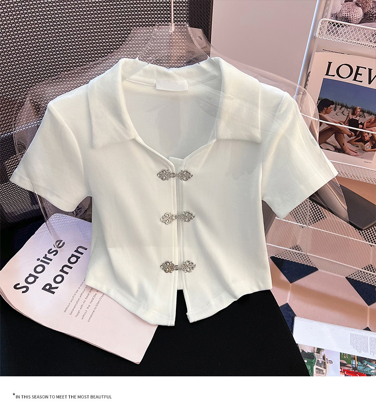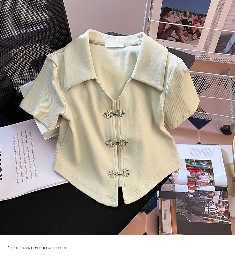 Летняя приталенная футболка, китайский стиль, воротник поло, подходит для подростков, короткий рукав