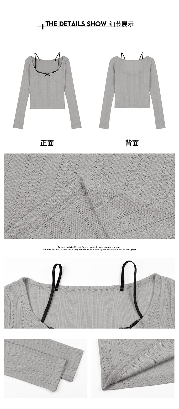 Кружевной комплект, весенняя футболка, короткий лонгслив, облегающий крой