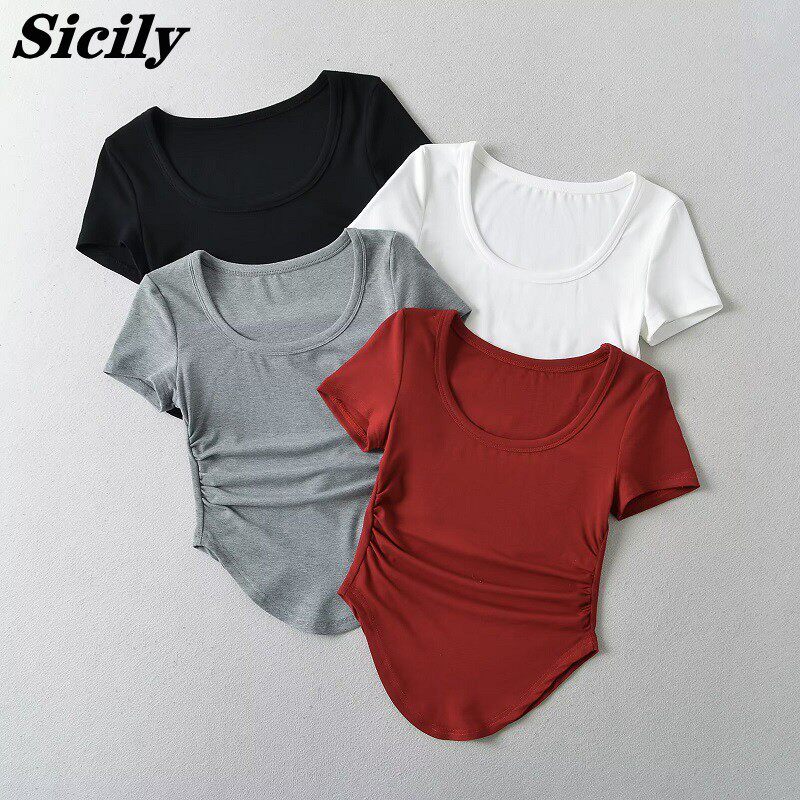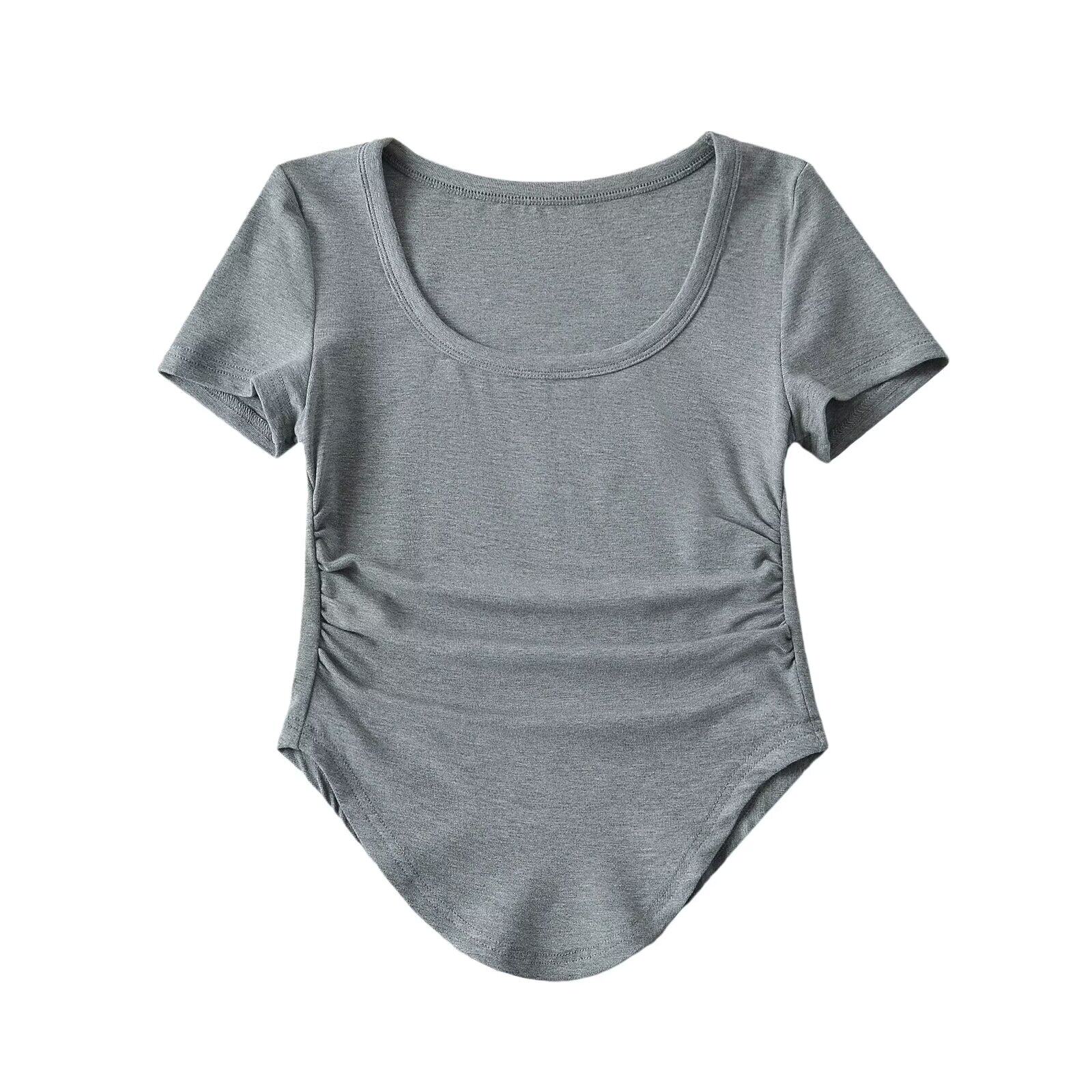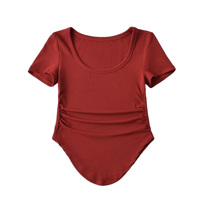 Летняя приталенная изогнутая футболка с коротким рукавом, в американском стиле