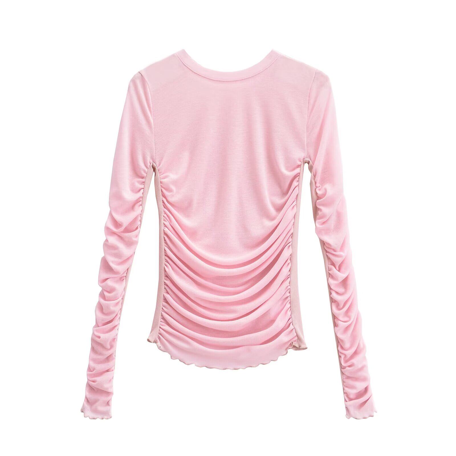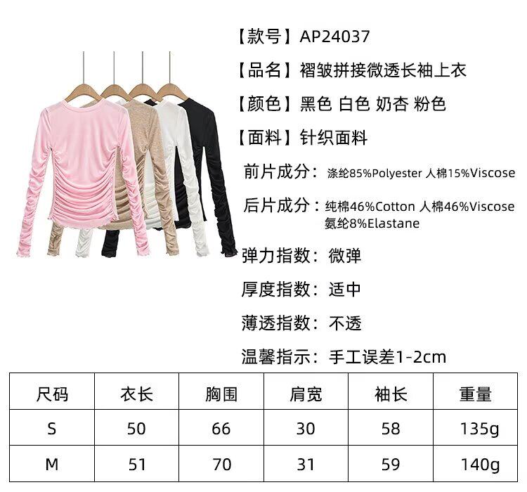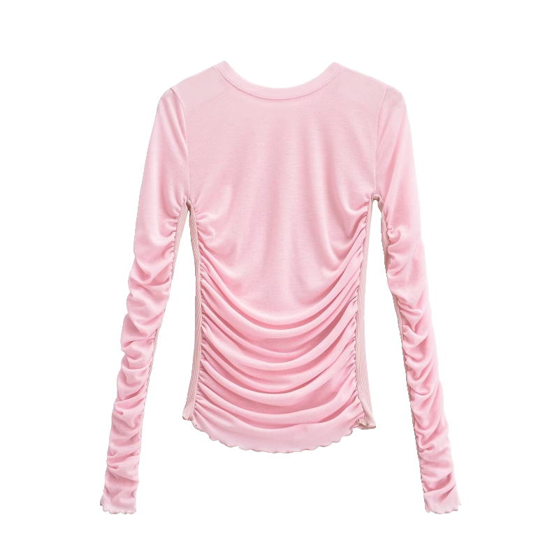 Zilu модная новая ниша дизайна в европейском и американском стиле, горячая девушка, плиссированная строчка, слегка прозрачная футболка с длинными рукавами, утягивающий топ для женщин