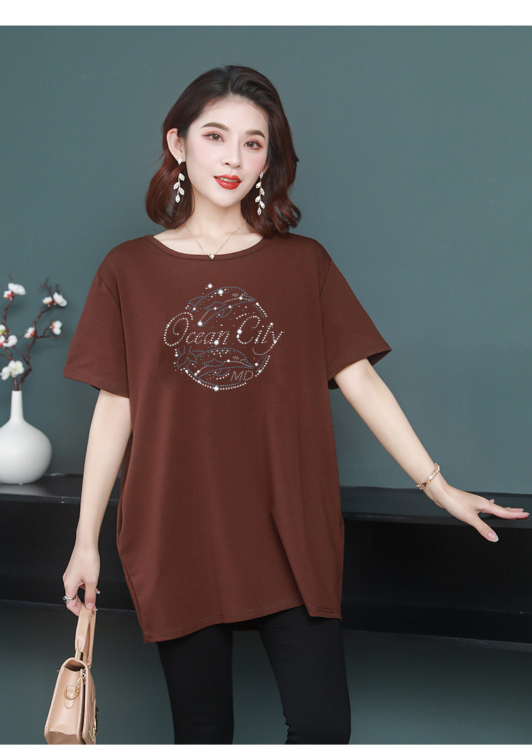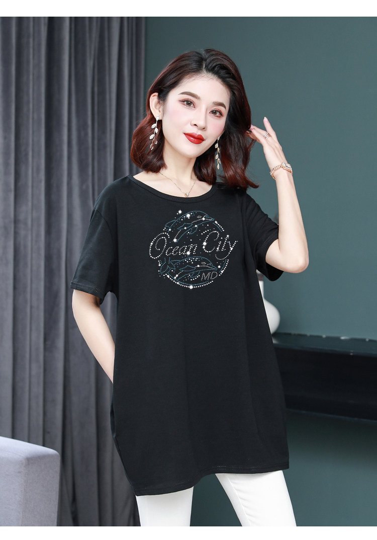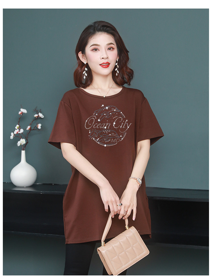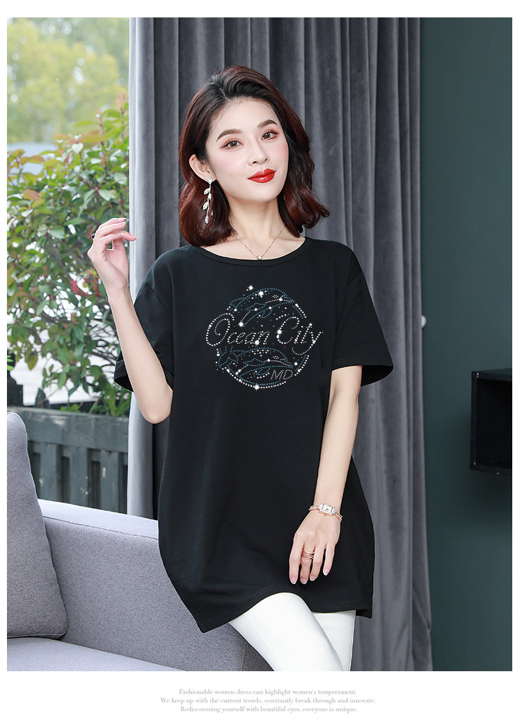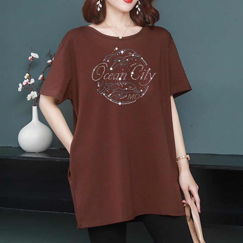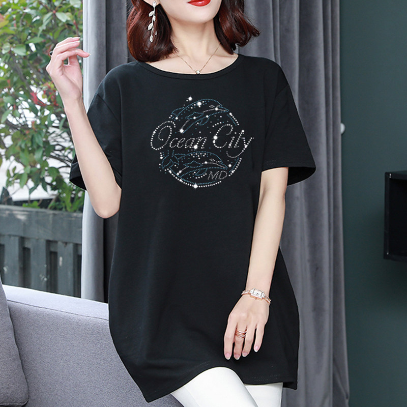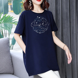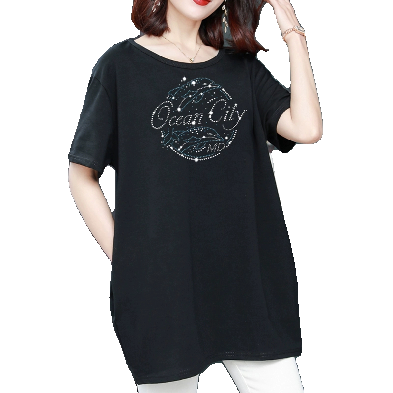 Длинная футболка с круглым воротником, средней длины, короткий рукав, оверсайз, большой размер, по фигуре
