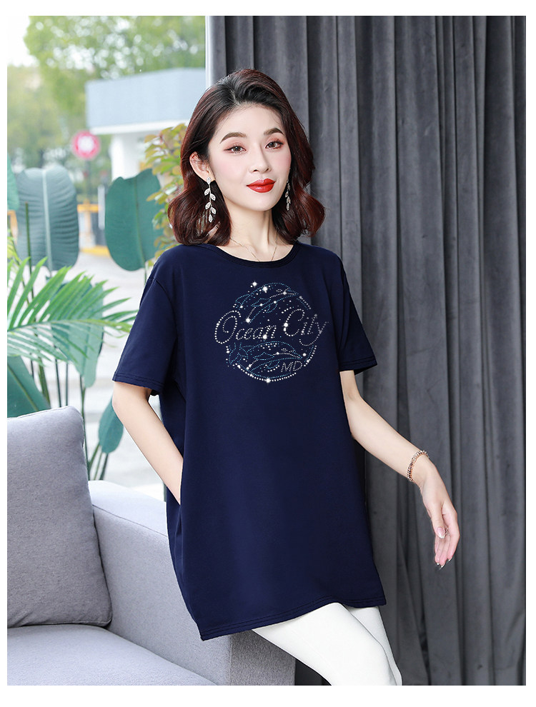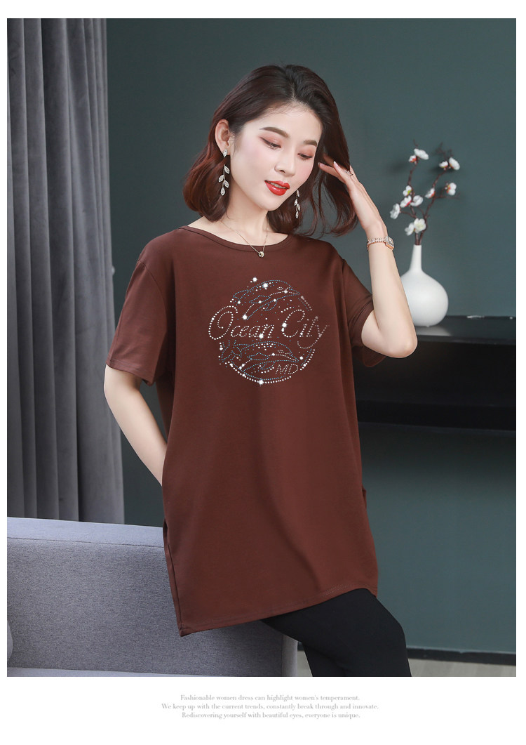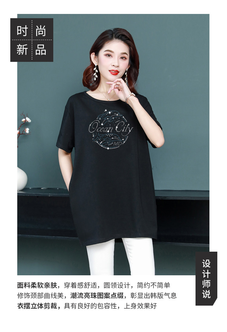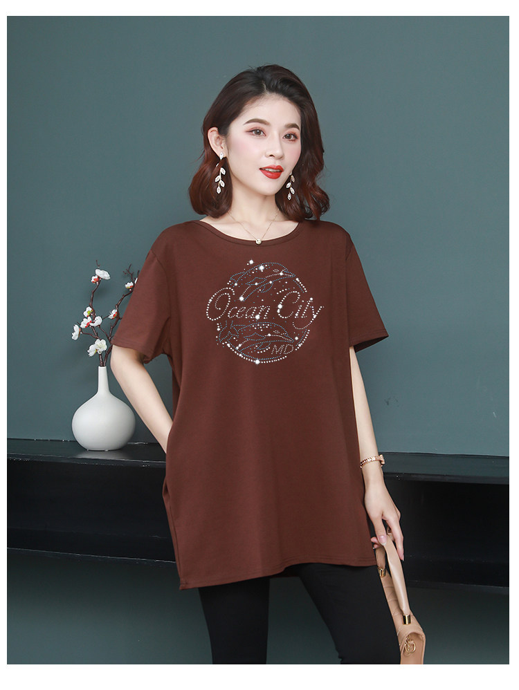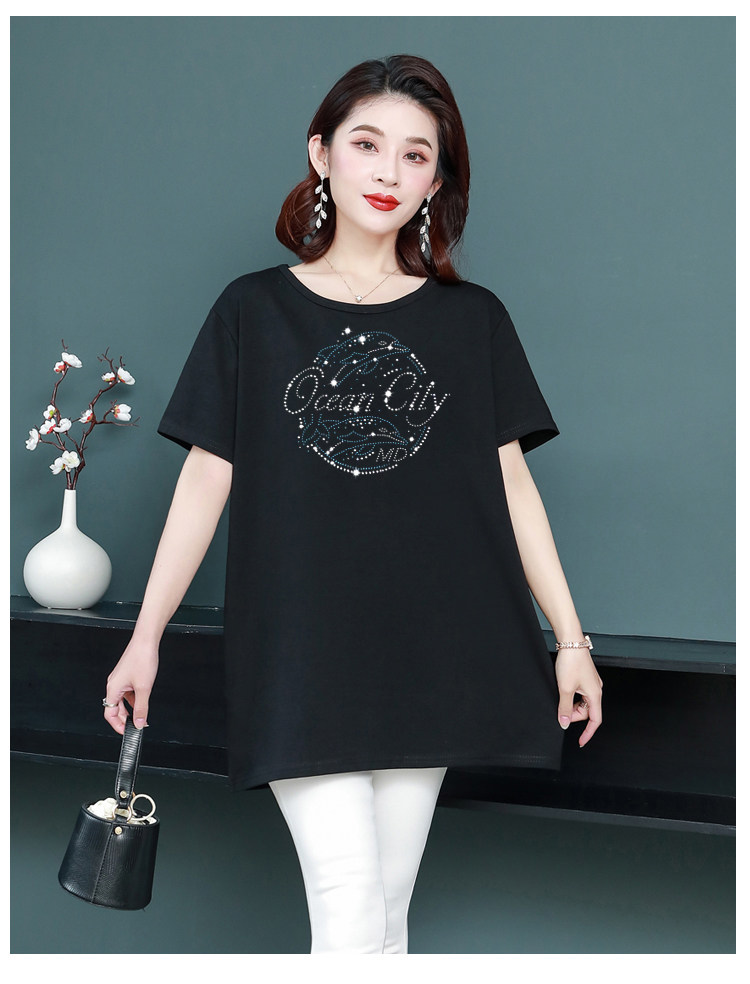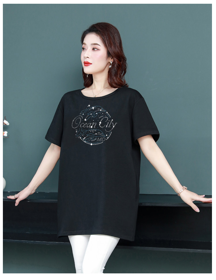 Длинная футболка с круглым воротником, средней длины, короткий рукав, оверсайз, большой размер, по фигуре