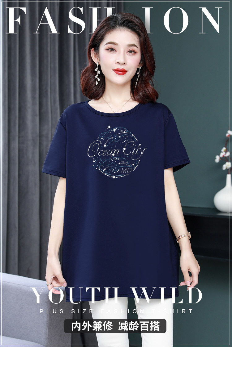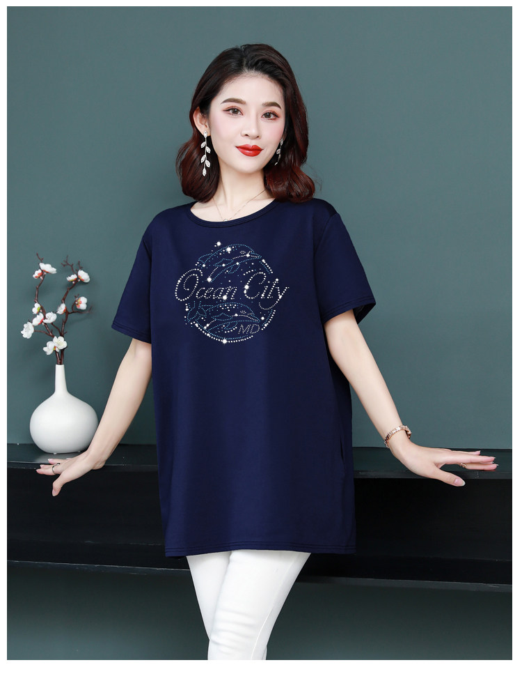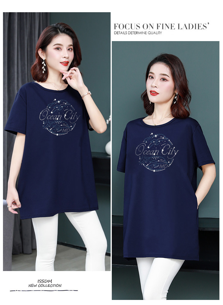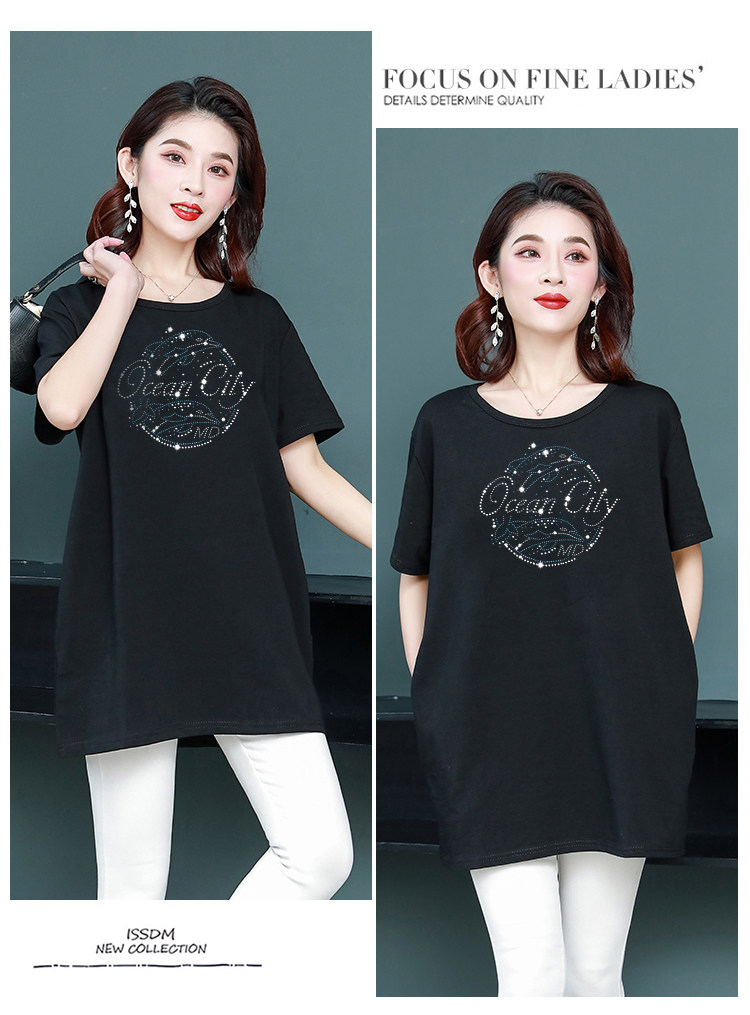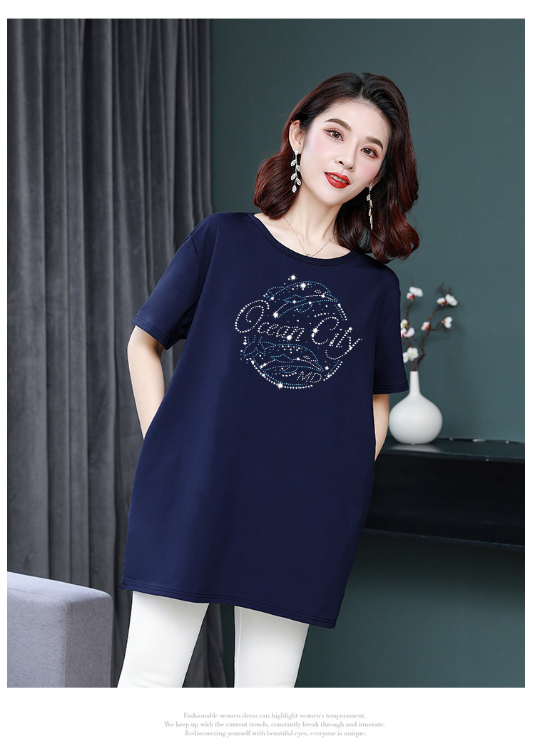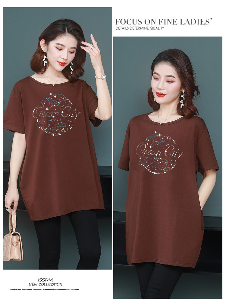 Длинная футболка с круглым воротником, средней длины, короткий рукав, оверсайз, большой размер, по фигуре