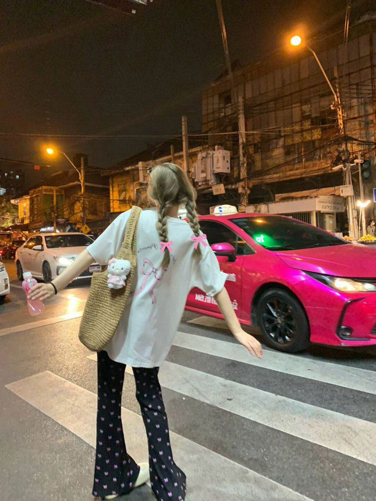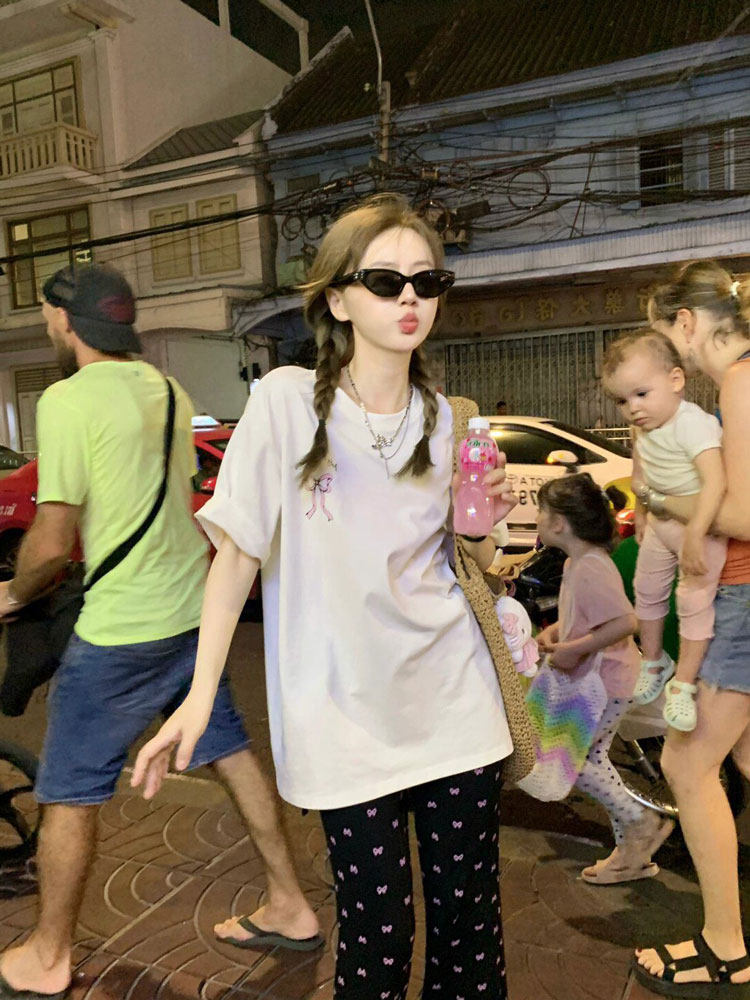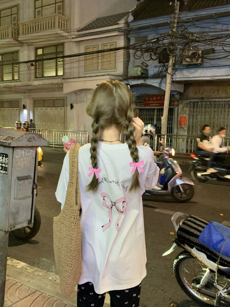 Милая белая летняя хлопковая футболка с бантиком, оверсайз