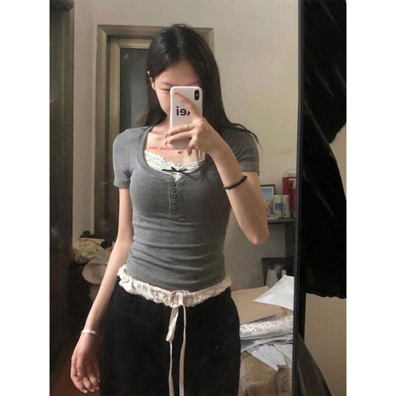 Летняя футболка с коротким рукавом, короткий корсет, в обтяжку