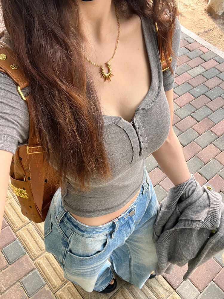 Pure Desire, популярная футболка для девочек с полуоткрытым воротником и правым плечом, с коротким рукавом, женская летняя футболка 2025, новый облегающий короткий топ с узкой талией