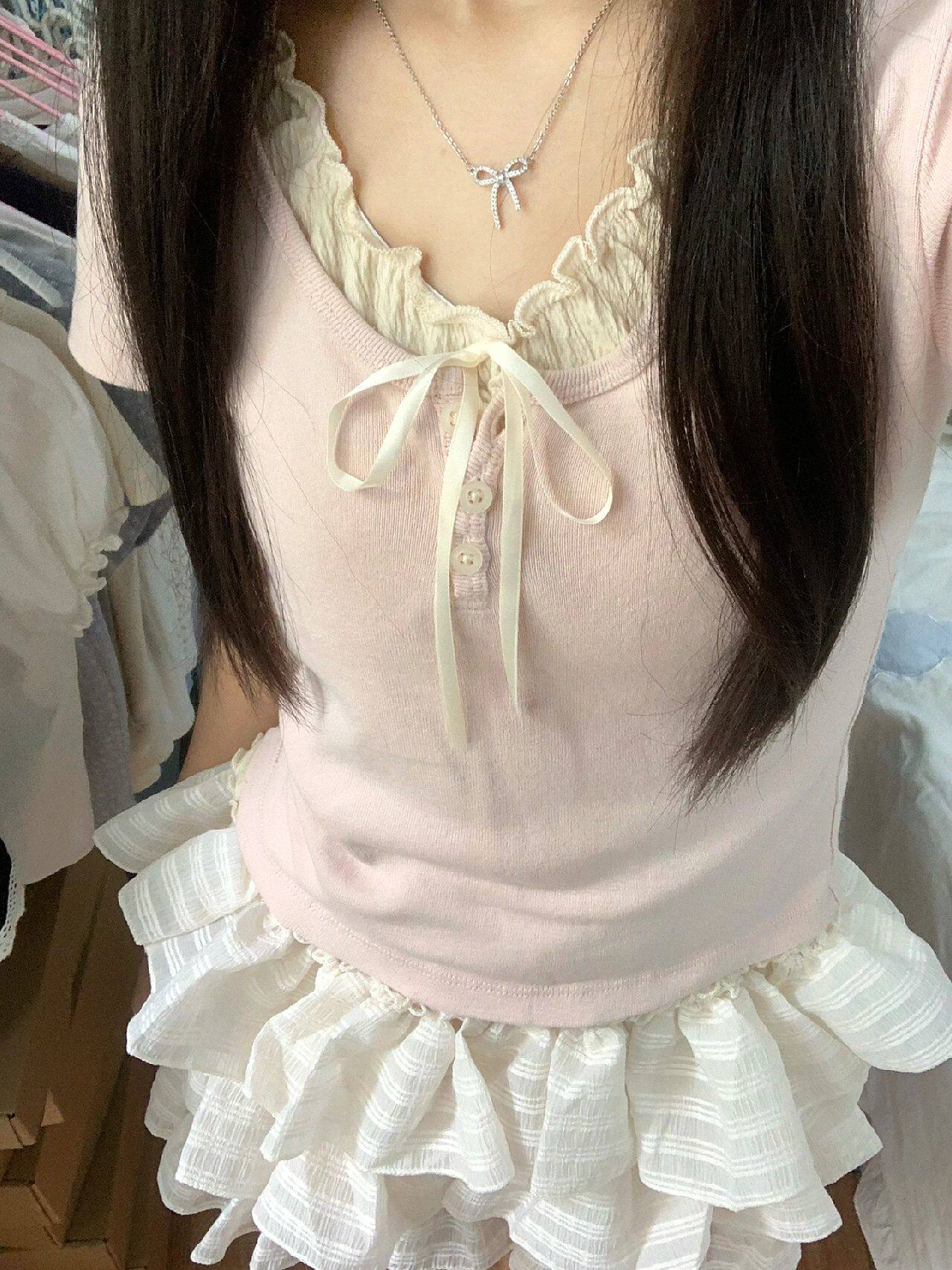 Розовая летняя футболка с коротким рукавом, короткий комплект, облегающий крой