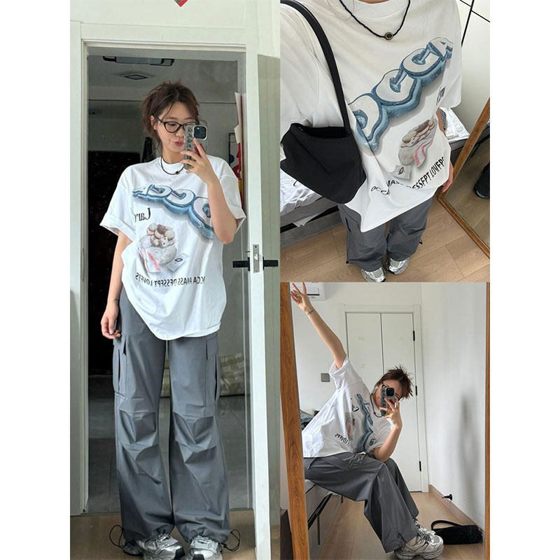Ретро белая летняя футболка, парная одежда для влюбленных, в американском стиле, оверсайз