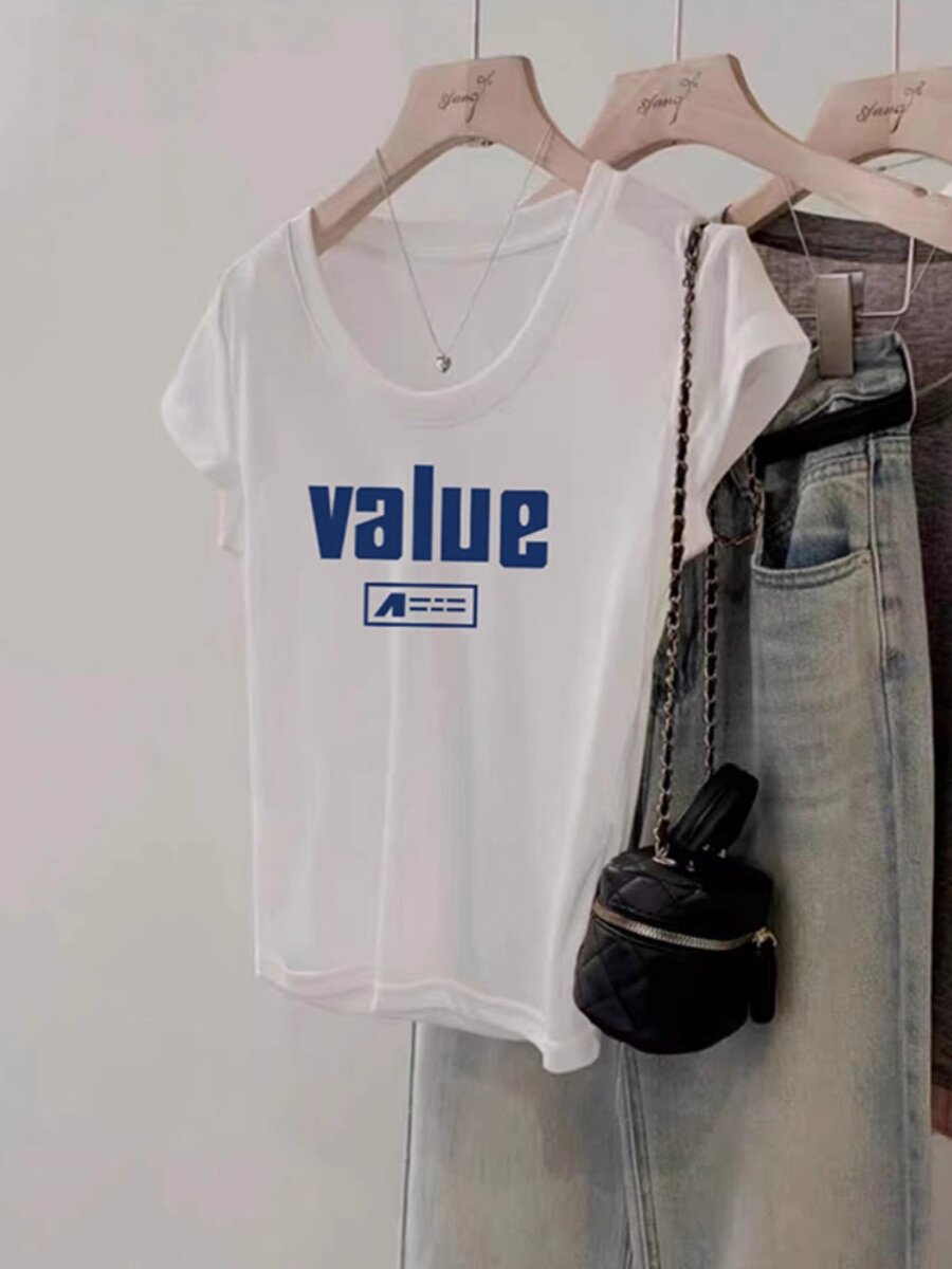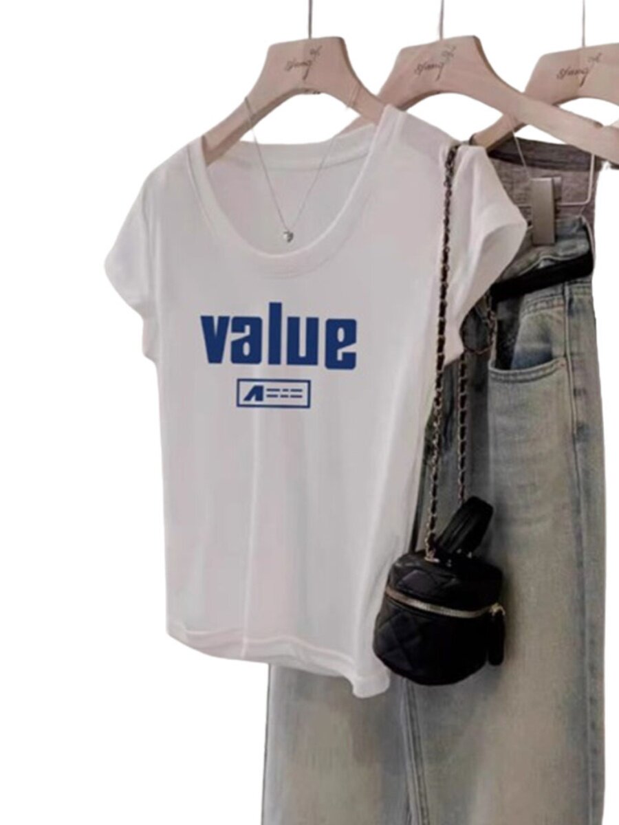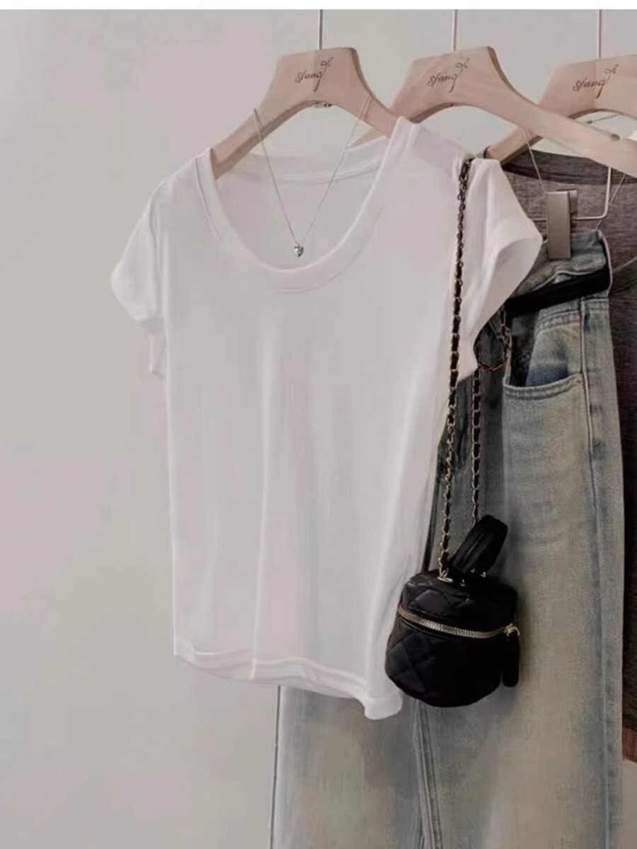 Белая женская футболка с низким U-образным вырезом и короткими рукавами на правое плечо, новинка 2024 года, летняя рубашка в западном стиле, универсальный утягивающий топ с большим вырезом