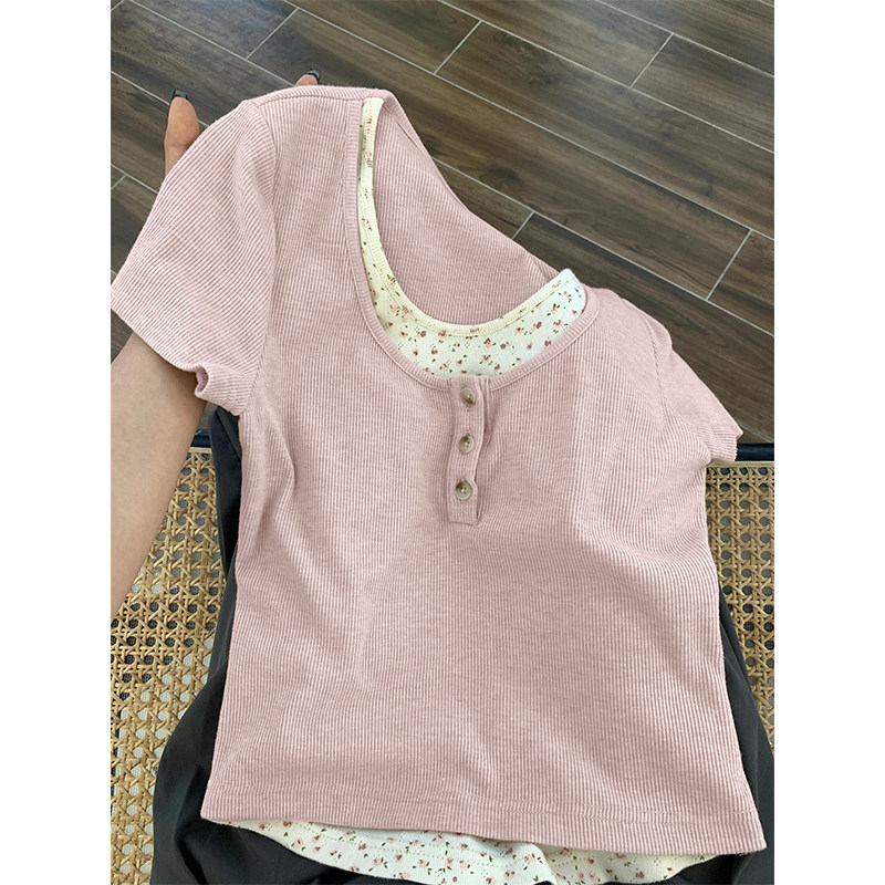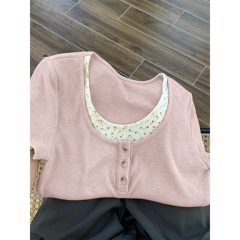 Футболка, летний комплект, цветочный принт, подходит для подростков, короткий рукав