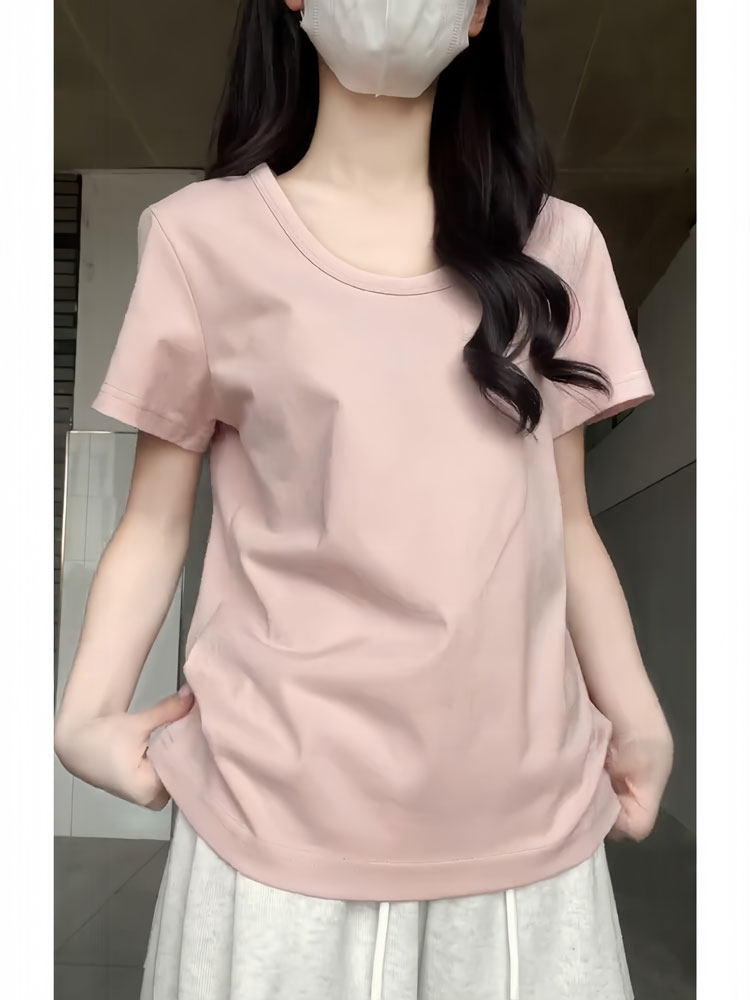 Розовая летняя хлопковая футболка с коротким рукавом для отдыха, свободный крой, короткий рукав