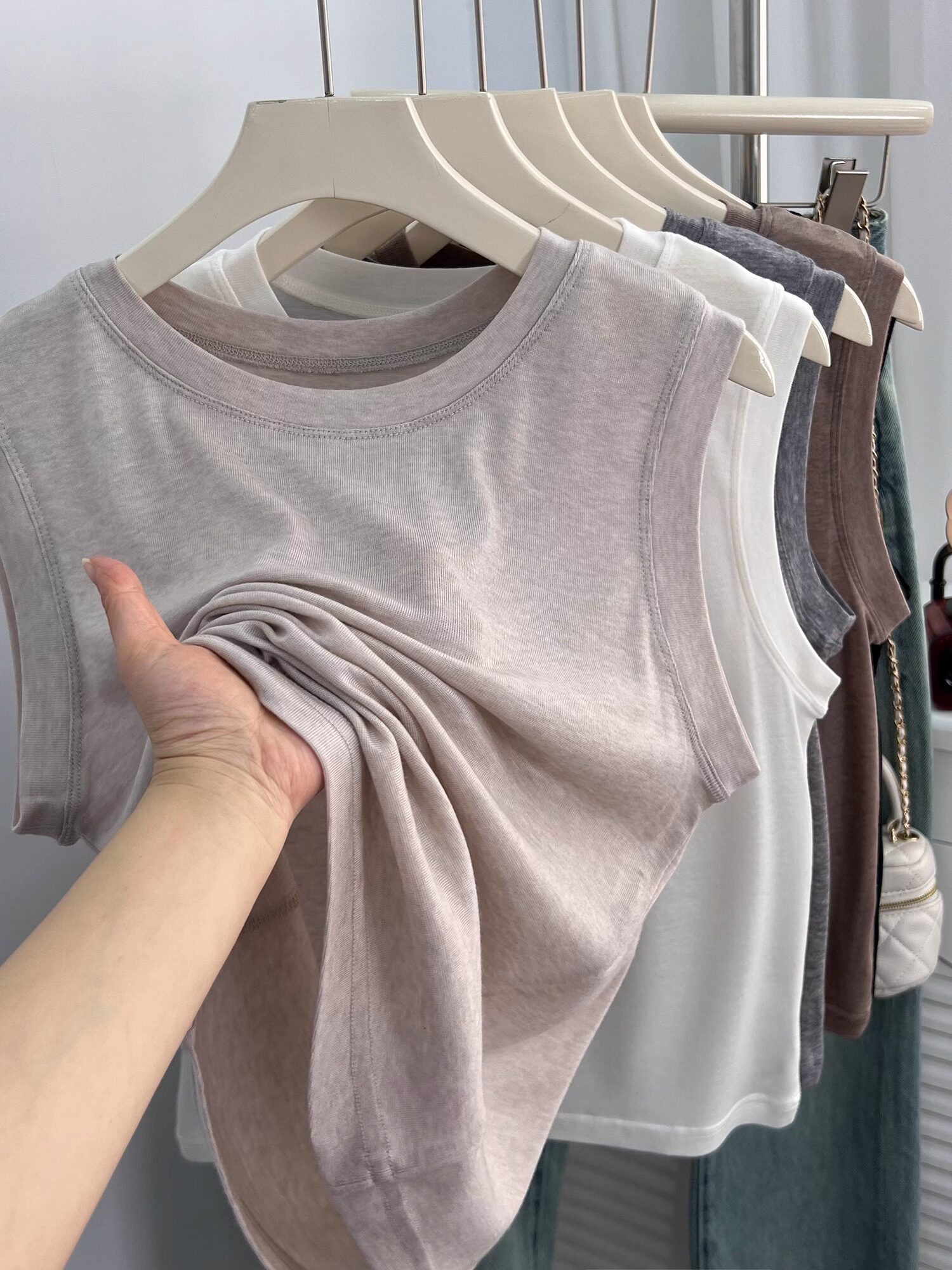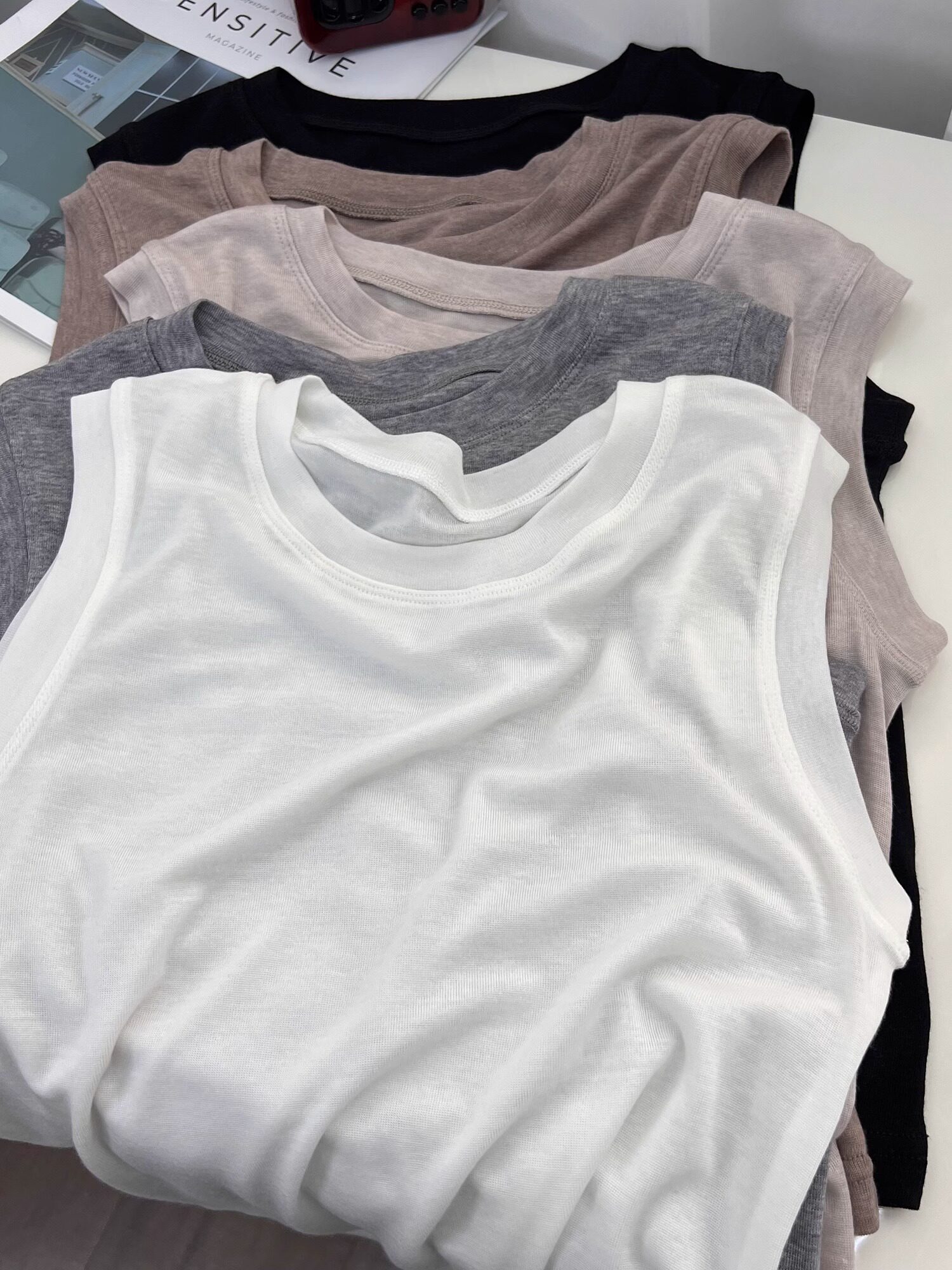 Легкая и тонкая мягкая майка топ, кремовое белье для повседневной носки, футболка с круглым воротником