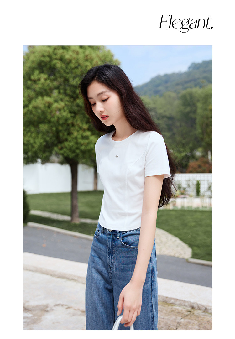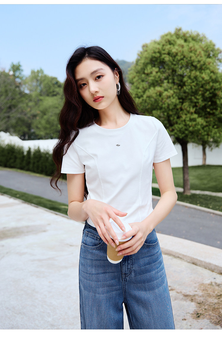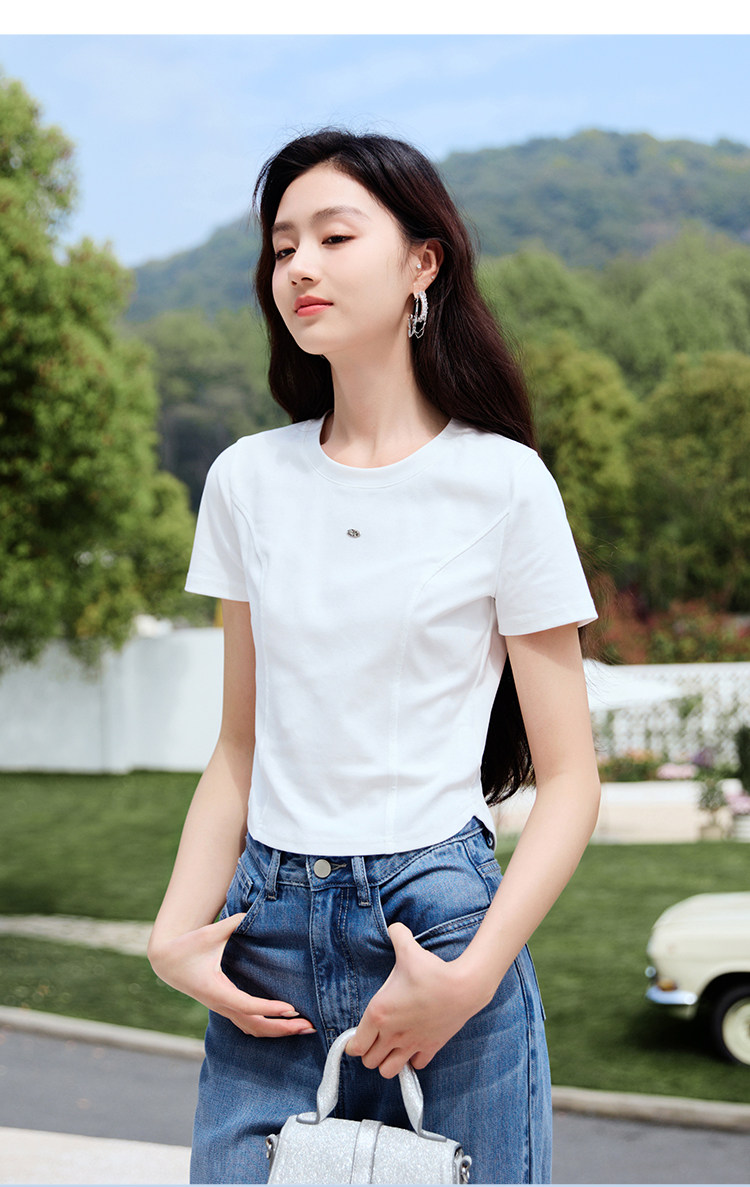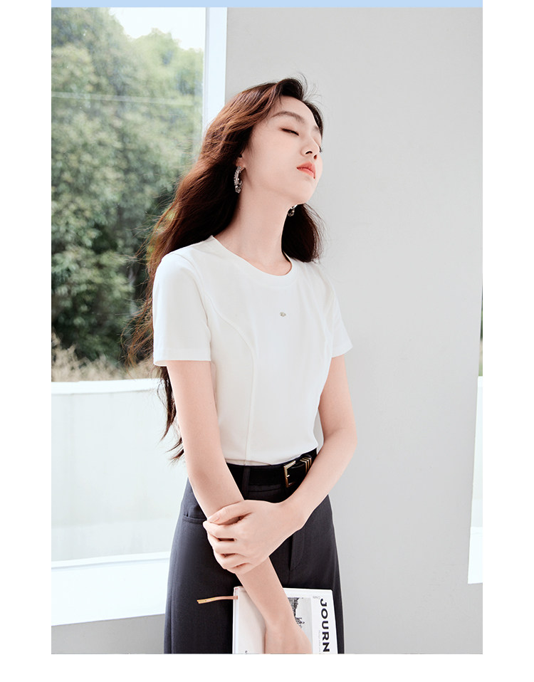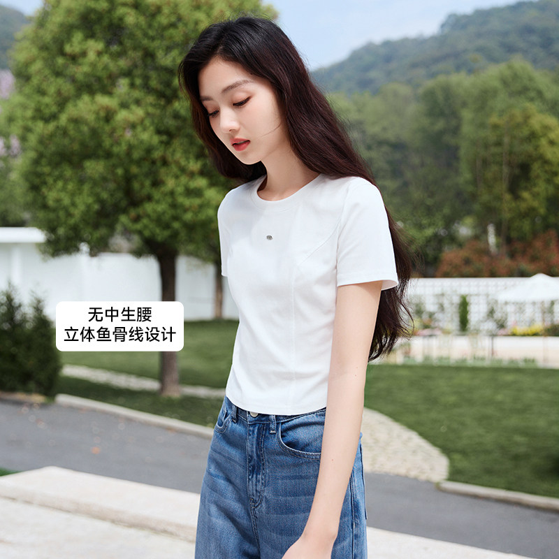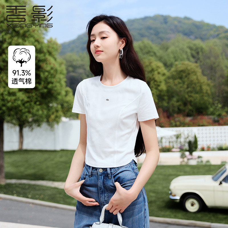 香影 Белая летняя дизайнерская футболка с круглым воротником, короткий рукав, тренд сезона, облегающий крой