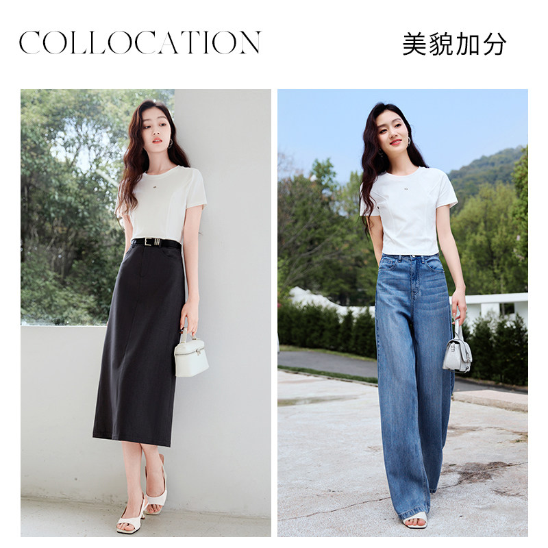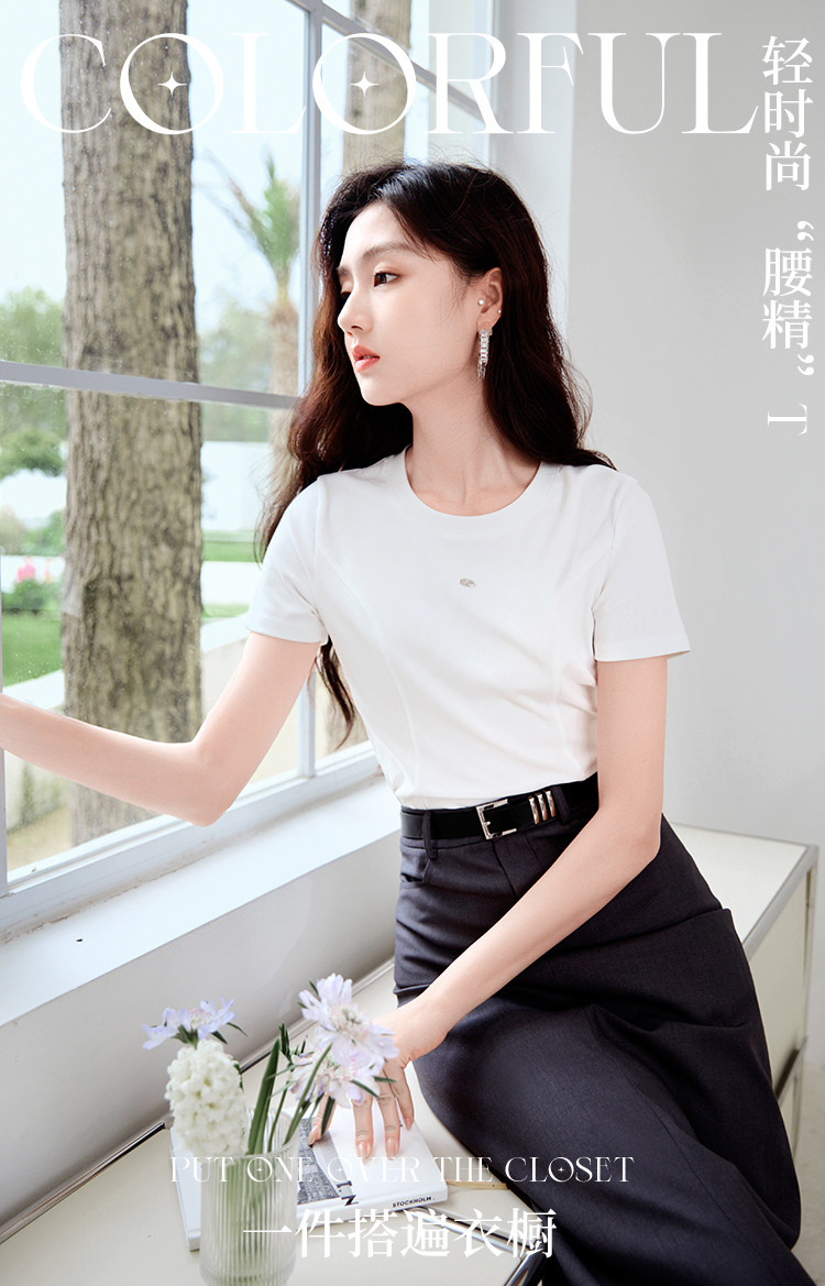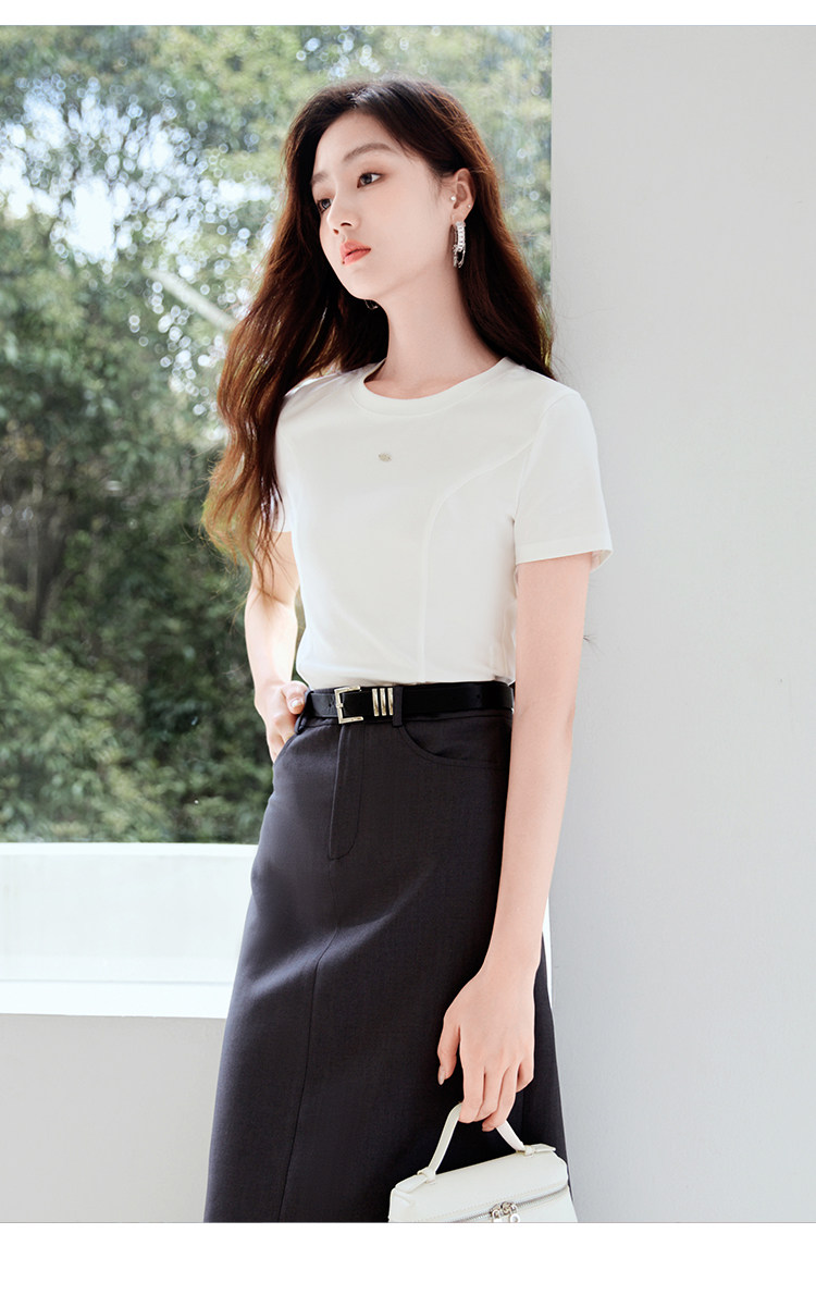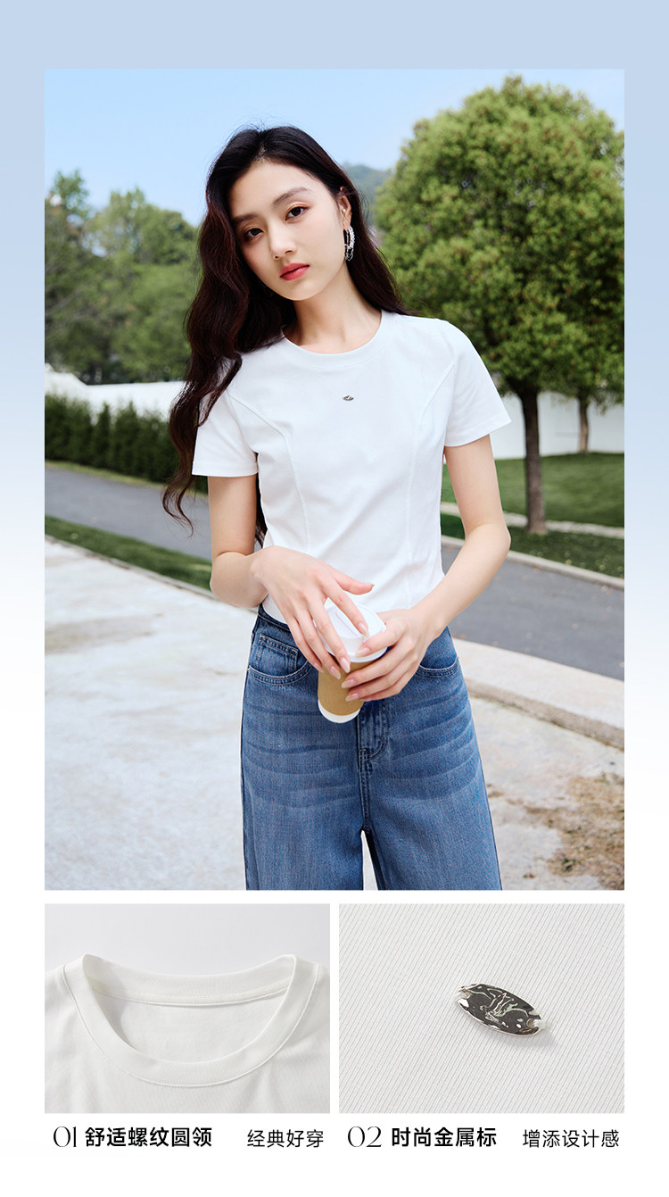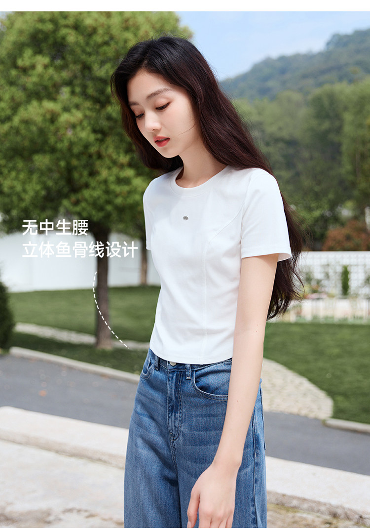 香影 Белая летняя дизайнерская футболка с круглым воротником, короткий рукав, тренд сезона, облегающий крой