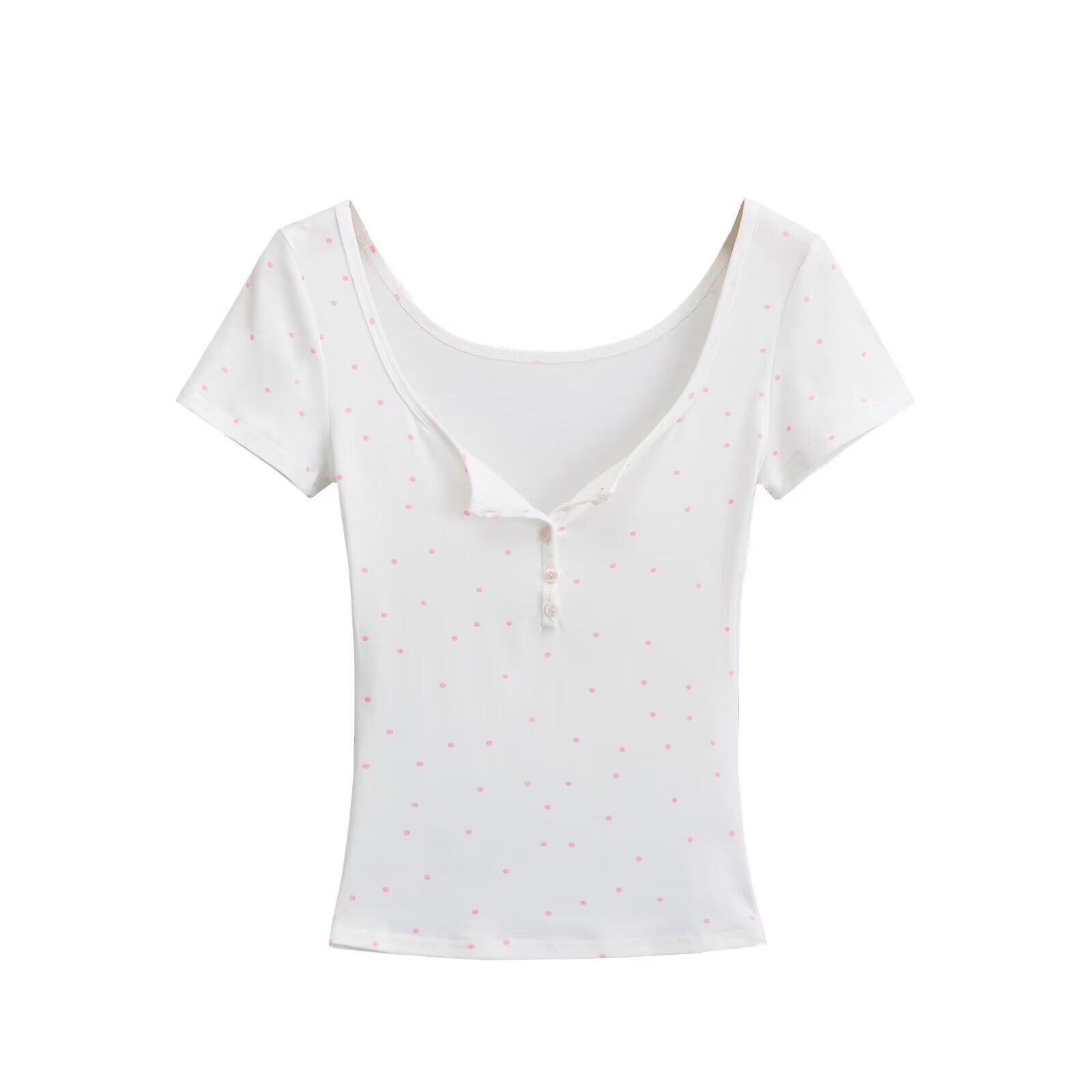 Zilu Chaopin, новая французская футболка в европейском и американском стиле с короткими рукавами и принтом в горошек, многослойный утягивающий топ на полупуговицах для женщин