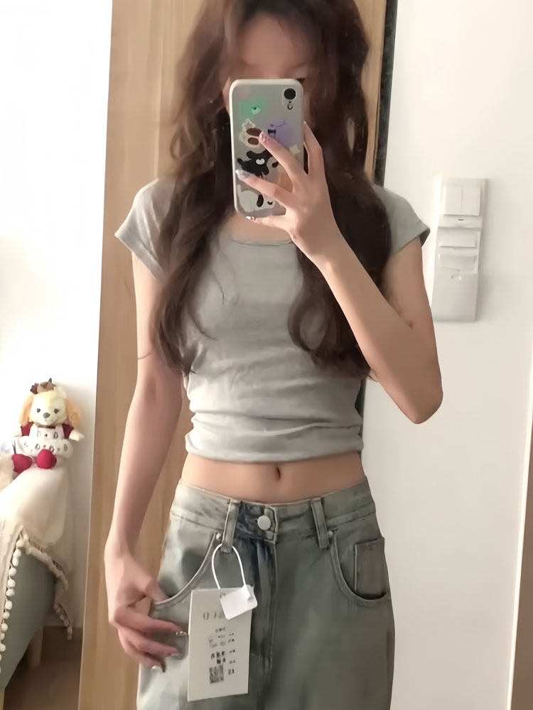 Летняя хлопковая сексуальная футболка с коротким рукавом